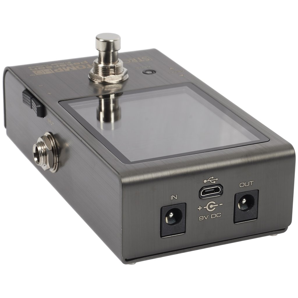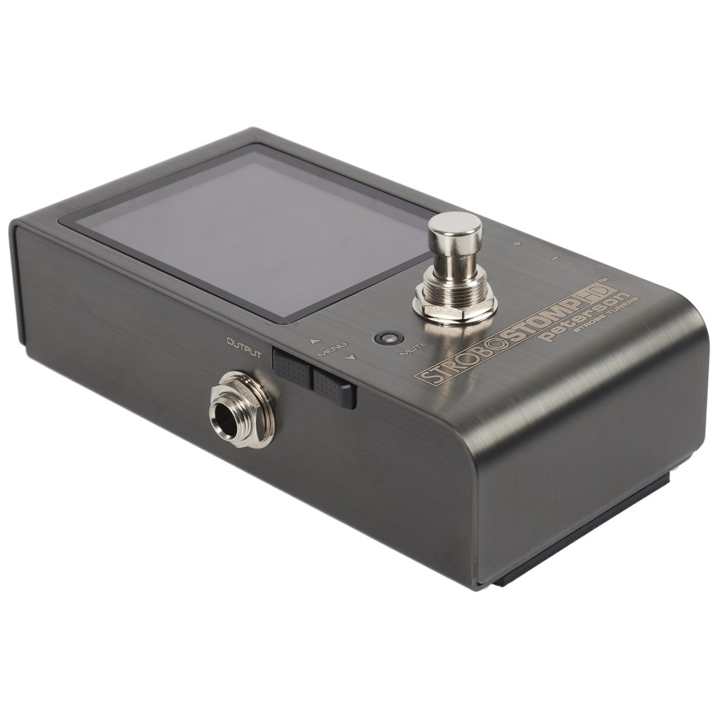 Pedálová ladička StroboStomp HD ponúka širokú škálu nastavení a vysokú kompatibilitu s hudobnými nástrojmi. Jednou z najväčších výhod je určite veľký, prehľadný displej, tiež v HD rozlíšení, zasadený do robustného šasi z nehrdzavejúcej ocele. Vybrať si môžete z desiatich farebných nastavení, takže sa vždy prispôsobíte slnečnému svetlu alebo zbiehajúcemu sa šeru, a zároveň si môžete farebne označiť uložené presety. Ladička obsahuje nožný spínač s veľmi tichou prevádzkou, režim true-bypass a v prípade dlhých káblov alebo zložitejšieho efektového reťazca oceníte režim buffera na elimináciu strát signálu.