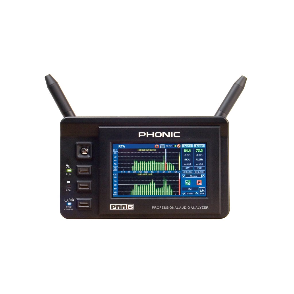 Merací nástroj s vysokou presnosťou, elegantný dotykový displej PAA6 ponúka plný prístup k 61-pásmovej spektrálnej analýze; rýchlej Fourierovej transformácii (FFT); zvukovému tlaku (SPL) a meraniu linkového napätia dBu/dBV; nastaveniu ekvalizéra; skúške polarity fázy; LEQ (ekvivalentu kontinuálnej úrovne hluku); audio osciloskopu a funkciám RT-60. PAA6 má tiež dva vstavané kondenzátorové meracie mikrofóny, ktoré sa dajú použiť v šiestich rôznych pozíciách. Ak je zvuk vaším produktom alebo vášňou, Phonic PAA6 je možno najmúdrejšia investícia, ktorú môžete urobiť do vášho štúdia alebo zvukového reprodukčného systému. Či už nastavujete monitory, riešite charakteristiku miestnosti, kalibrujete posluchové úrovne alebo chcete vedieť harmonické skreslenie a šumovú charakteristiku vášho obľúbeného preampu, aby ste zaistili čisté mixy, Phonic PAA6 je vaším kľúčom ku zvuku najvyššej možnej kvality.