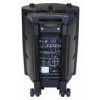 8" prenosný PA systém určený pre mobilné aplikácie v teréne s 12V vstavaným akumulátorom. Výkon 50W. Obsahuje 1x ručný bezdrôtový VHF mikrofón, 1 ručný káblový mikrofón. Má vstupy pre dva káblové mikrofóny 1x LINE vstup a LINE mix výstup. Má vstavaný MP3 prehrávač s USB konektorom, slotom pre SD kartu, LCD displejom a diaľkovým ovládaním. Tiež má 2-pásmové korekcie a echo efekt. Systém má možnosť napájania zo vstavaného akumulátora, z externej 12V batérie, alebo z adaptéra zo siete 230V/50Hz. Systém je vhodný napr. pre konferencie, školenia a všade tam, kde je potreba reprodukovať hudbu a reč. Sústava má vstavanú výsuvnú rukoväť a kolieska pre jednoduchší transport.