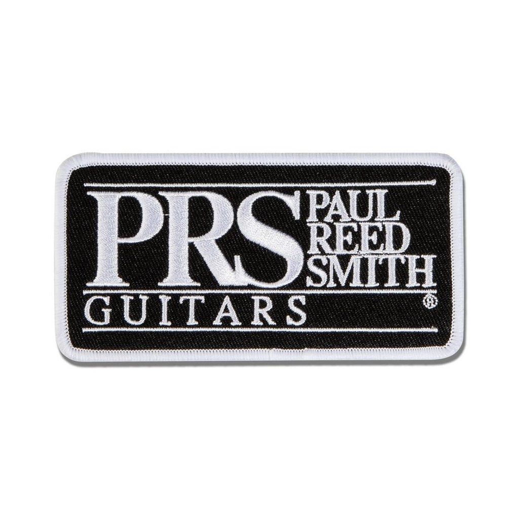 Štýlová štvorcová nášivka s logom PRS Guitars, vhodná na nažehlenie alebo prišitie.