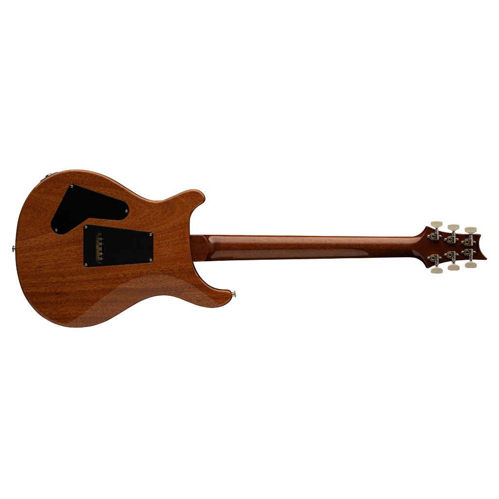 Model Custom 24-08 Black Top (Natural Back) zaujme na prvý pohľad kombináciou lesklej čiernej javorovej vrchnej dosky a mahagónového tela. K jednodielnemu mahagónovému krku s profilom Pattern Thin je prilepený palisandrový hmatník osadený dvadsiatimi štyrmi pražcami. Orientáciu na hmatníku uľahčujú značkové PRS pozičné značky v podobe perleťových siluet vtákov.