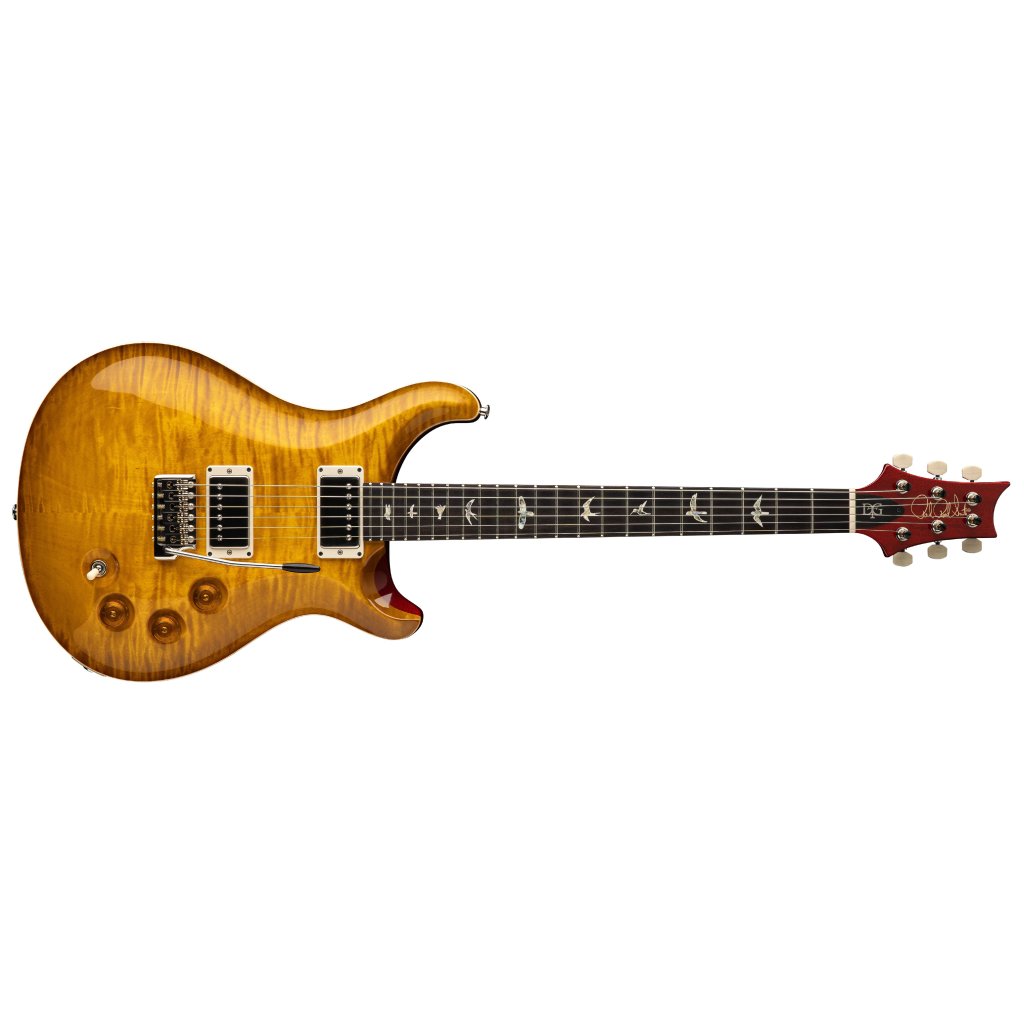 Mahagónové telo DGT Birds McCarty Sunburst zdobí figúrovaný javorový top. K mahagónovému krku je prilepený palisandrový hmatník s dvadsiatimi dvoma pražcami. Orientáciu na hmatníku uľahčujú značkové PRS pozičné značky v podobe perleťových siluet vtákov.