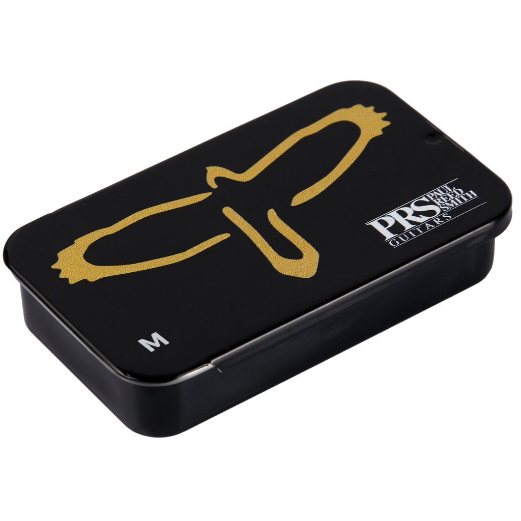 Spoločnosť PRS je známa výrobou špičkových gitár, ale jej gitarové príslušenstvo drží latku rovnako vysoko. Tieto trsátka sú vyrobené z celuloidu, ktorý sa zvukom a pocitom najviac približuje pravým korytnačím trsátkam, ale ponúka oveľa väčšiu flexibilitu a čistý, jasný atak. Táto sada obsahuje dvanásť trsátok z celuloidu Medium v zberateľskej plechovej škatuľke. Potešia nielen svojou špičkovou kvalitou, ale aj elegantným dizajnom, ktorému dominuje čierna farba a zlaté vtáčie motívy, ktoré poznáte z hmatníkov gitár PRS.