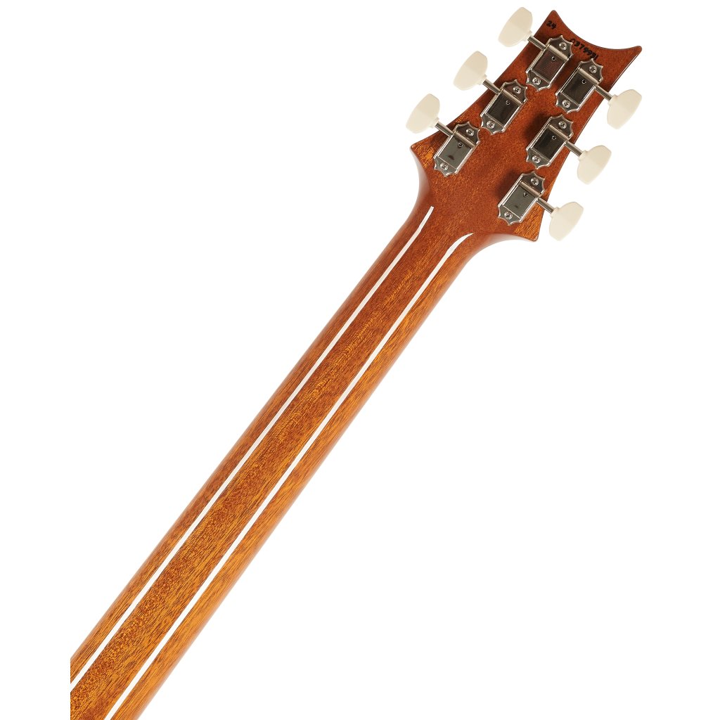 McCarty 594 Singlecut Red Tiger je nástroj s dušou vintage gitár, dizajnom tela s jedným výrezom a skvelými hernými vlastnosťami. Na prvý pohľad zaujme pôsobivá kresba dreva figúrovanej javorovej vrchnej dosky. K mahagónovému krku s profilom Pattern Vintage je prilepený palisandrový hmatník. Kratšia menzúra gitary (625 mm) je samozrejme stelesnená v označení modelu McCarty 594 (24,594 palca). Orientáciu po ploche hmatníka uľahčujú polohové značky v podobe perleťových siluet vtákov.