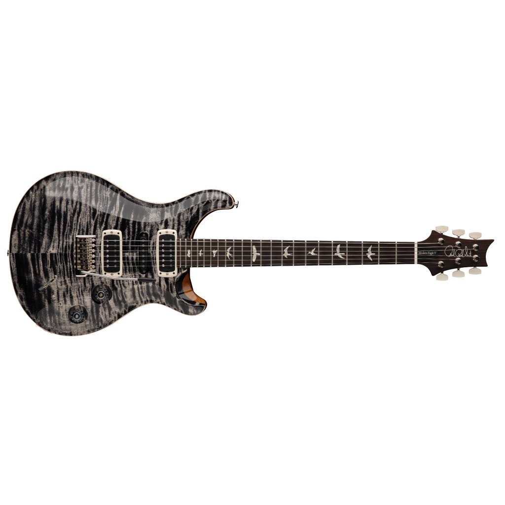 PRS Modern Eagle V je moderná elektrická gitara v dizajne PRS s dvojitým výrezom a konfiguráciou snímačov H-S-H, ktorú oceníte v štúdiu aj na pódiu. Ergonomicky tvarované mahagónové telo Modern Eagle V Charcoal zdobí figúrovaný javorový top a lesklý nitro lak. Jednodielny mahagónový krk s profilom Pattern je prilepený k palisandrovému hmatníku osadenému dvadsiatimi dvoma pražcami. Orientáciu na hmatníku uľahčujú značkové PRS pozičné značky v podobe luxusných perleťových siluet vtákov.