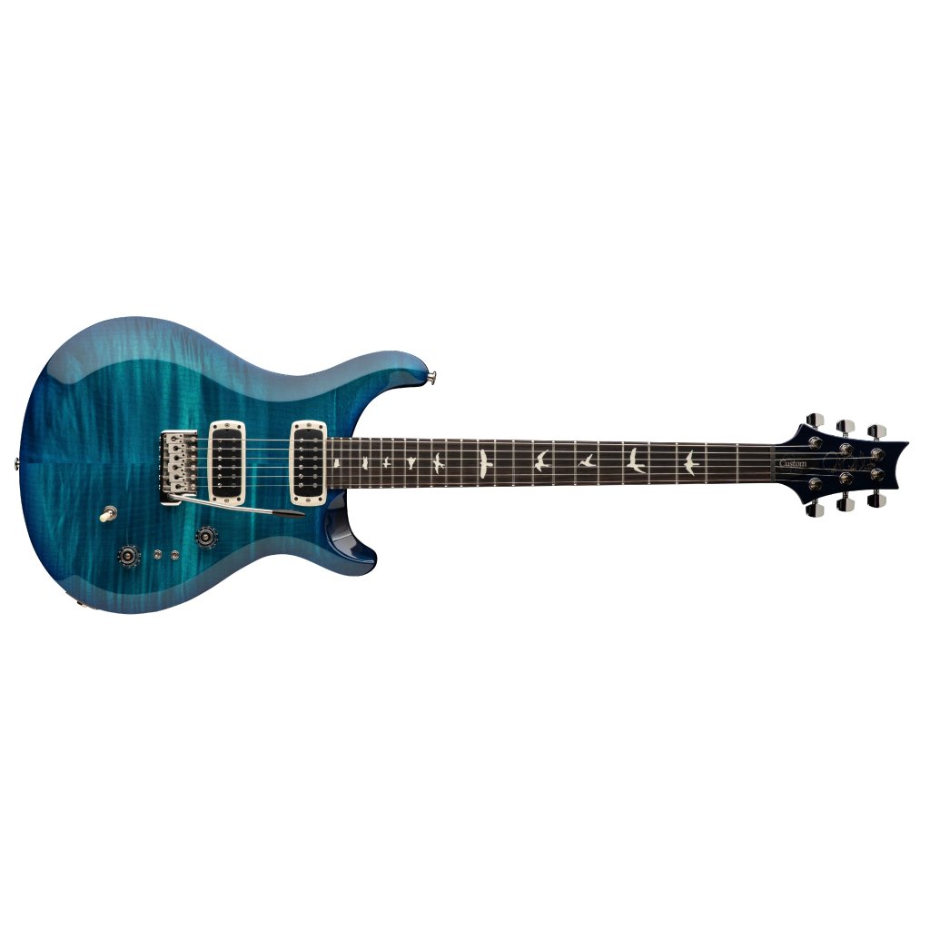 Mahagónové telo modelu S2 Custom 24-08 Lake Blue s charakteristickým PRS dizajnom s dvojitým výrezom zdobí efektná vrchná doska z fládrovaného javora podporená farebne zladenou lesklou nitro povrchovou úpravou. Výrazne skosené hrany tela podporujú celkovú ergonómiu hry. K mahagónovému krku s profilom Pattern Thin je prilepený palisandrový hmatník osadený dvadsiatimi štyrmi pražcami. Orientáciu na hmatníku uľahčujú polohové značky v podobe perleťových siluet vtákov.