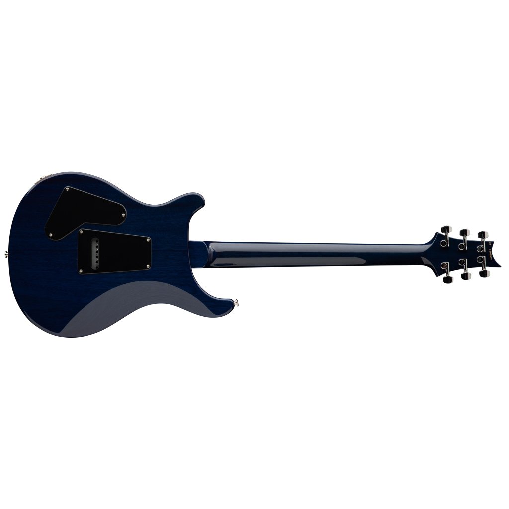 Mahagónové telo S2 Custom 24 Lake Blue s charakteristickým dizajnom PRS s dvojitým výrezom zdobí efektná vrchná doska z fládrovaného javora podporená farebne zladenou povrchovou úpravou a lesklým nitro lakom. Výrazne skosené hrany tela podporujú celkovú ergonómiu hry. K mahagónovému krku s profilom Pattern Thin je prilepený palisandrový hmatník osadený dvadsiatimi štyrmi pražcami. Polohové značky v podobe perleťových siluet vtákov uľahčujú orientáciu na hmatníku.