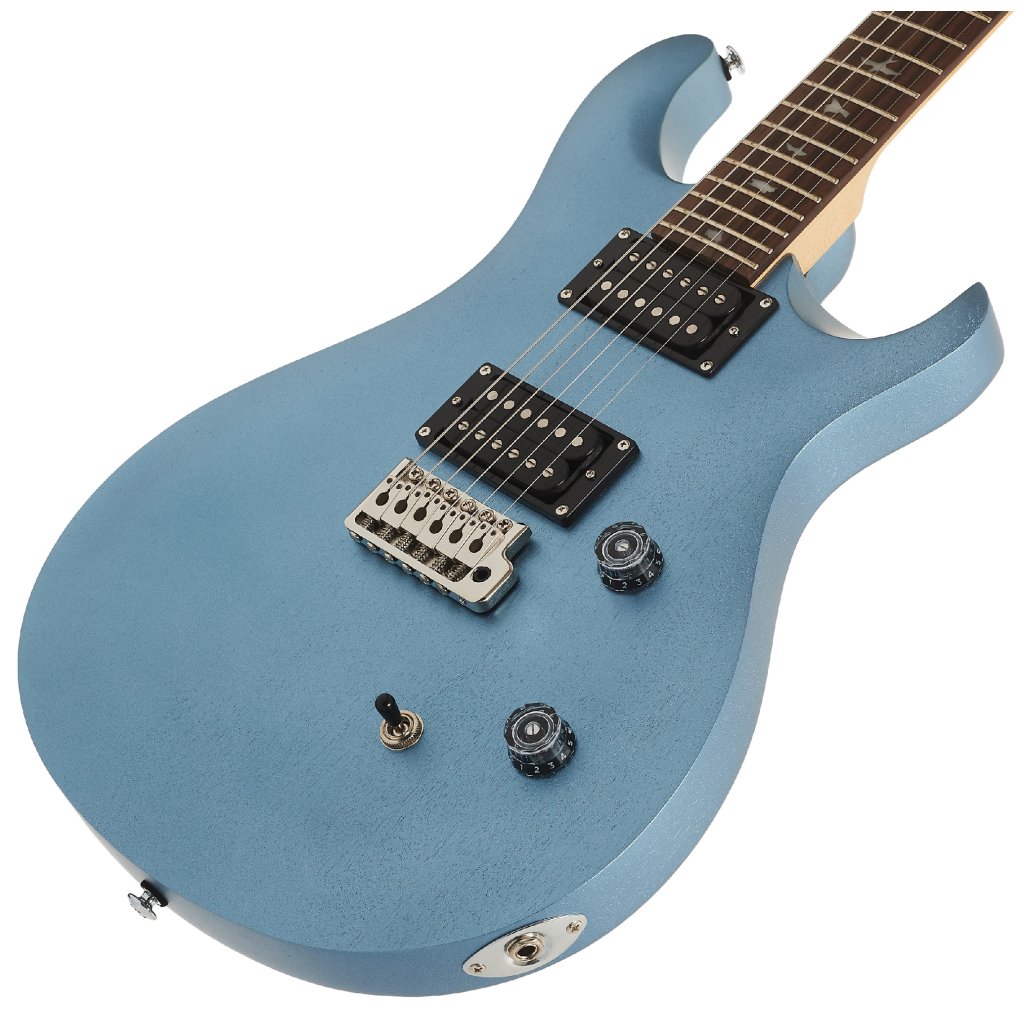 Tělo kytary SE CE24 Standard Satin Ice Blue Metallic je zhotoveno z mahagonu. Výřez Shallow Violin carve přibližuje kvalitou herní vlastnosti nástroje k dražším americkým modelům série Core. K javorovému krku s profilem Wide Thin je přilepen palisandrový hmatník osazený čtyřiadvaceti pražci. Orientaci na hmatníku usnadňují polohové značky v podobě perleťových ptačích siluet.