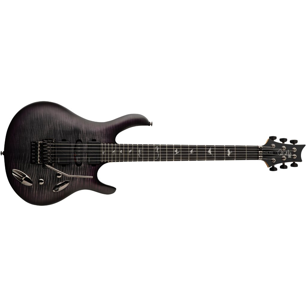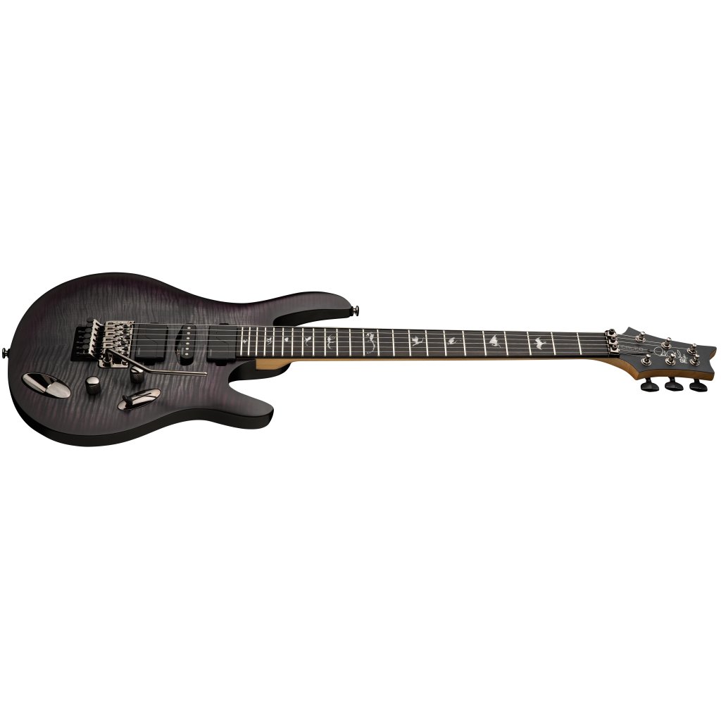 Mahagonové tělo elektrické kytary SE Chleo Charcoal Purple Burst zdobí tvarovaný javorový top a vrchní dýha z fládrovaného javoru. K úzkému rychlému javorovému krku je přilepen ebenový hmatník osazený čtyřiadvaceti pražci. Krk zpevňují výztuže z karbonových vláken, hmatník dekorují polohové značky v designu “Eclipse Dragon”.