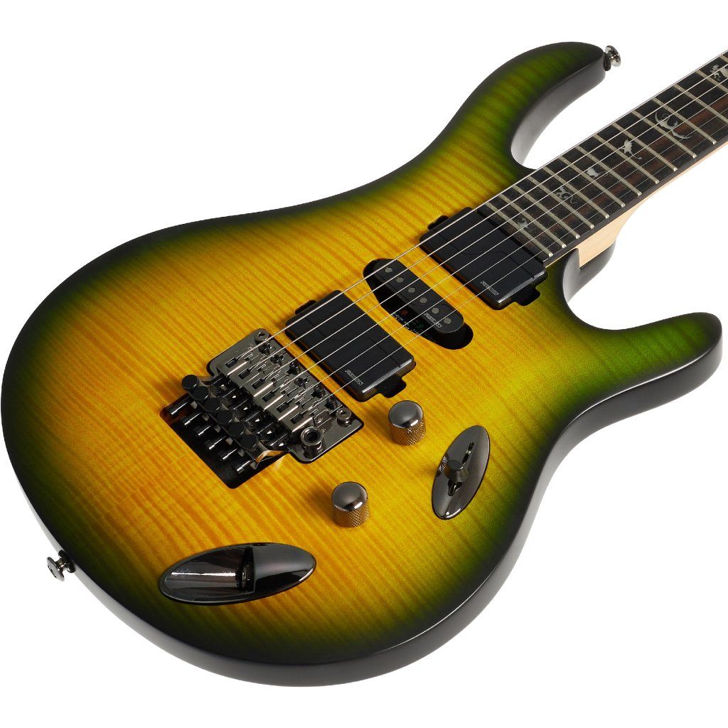 Mahagonové tělo elektrické kytary SE Chleo Mantis Burst zdobí tvarovaný javorový top a vrchní dýha z fládrovaného javoru. K úzkému rychlému javorovému krku je přilepen ebenový hmatník osazený čtyřiadvaceti pražci. Krk zpevňují výztuže z karbonových vláken, hmatník dekorují polohové značky v designu “Eclipse Dragon”.