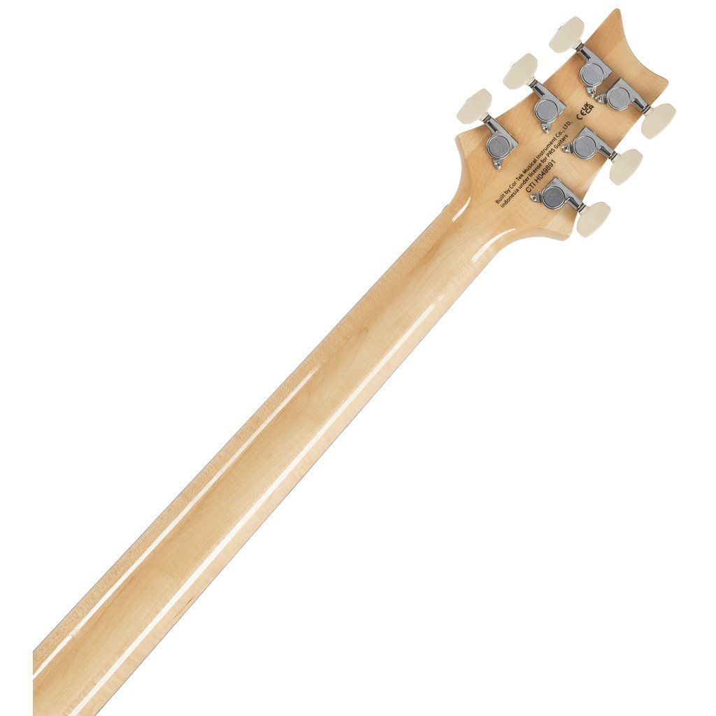 Mahagónové telo ľavostrannej gitary SE Custom 24 LH Slate Blue 2026 zdobí javorová vrchná doska a impozantná dyha z plamenného javora. Výrez Shallow Violin carve približuje hracie vlastnosti nástroja drahším americkým modelom zo série Core. Javorový krk s profilom Wide Thin je prilepený k palisandrovému hmatníku s dvadsiatimi štyrmi pražcami. Polohové značky v podobe siluet vtákov uľahčujú orientáciu na hmatníku.
