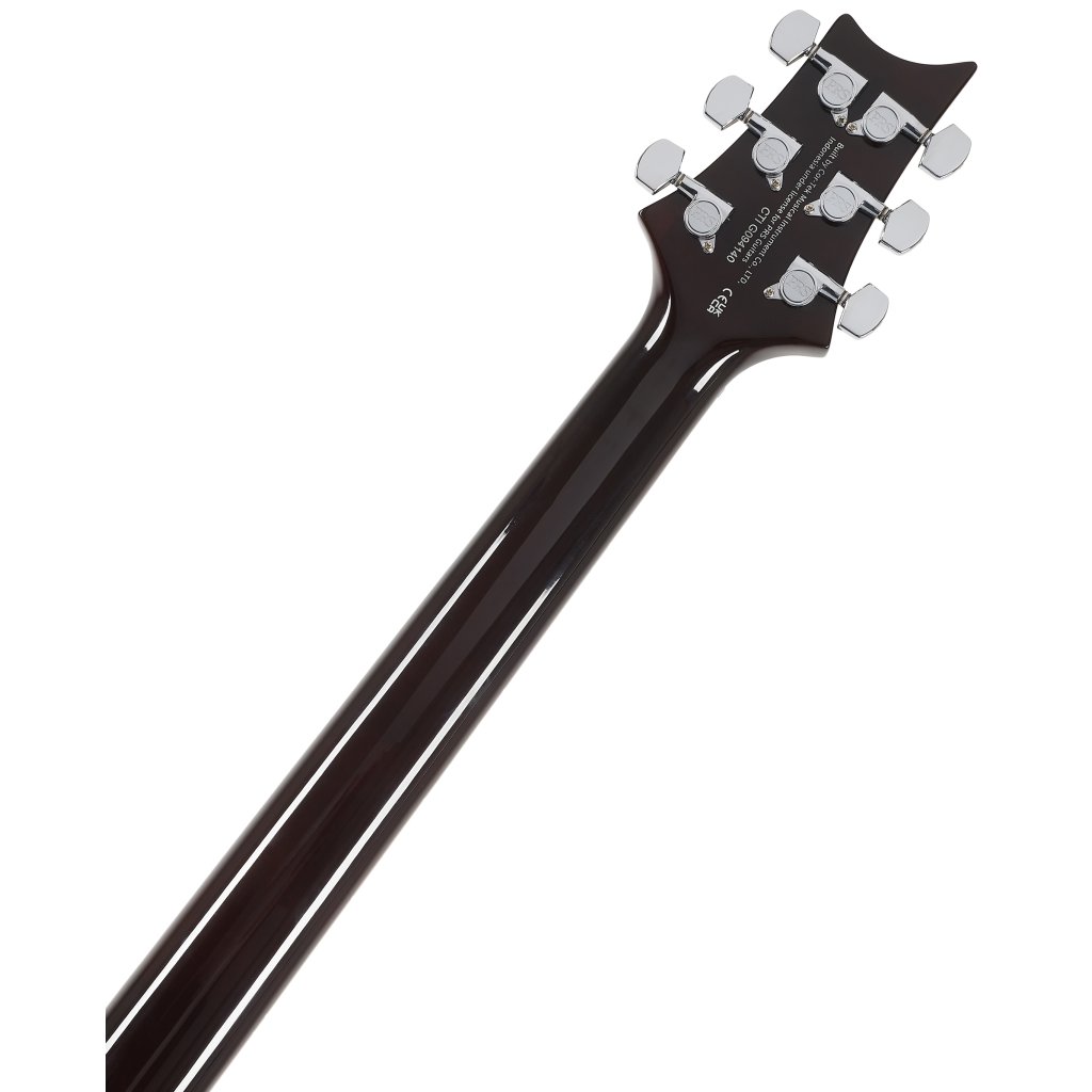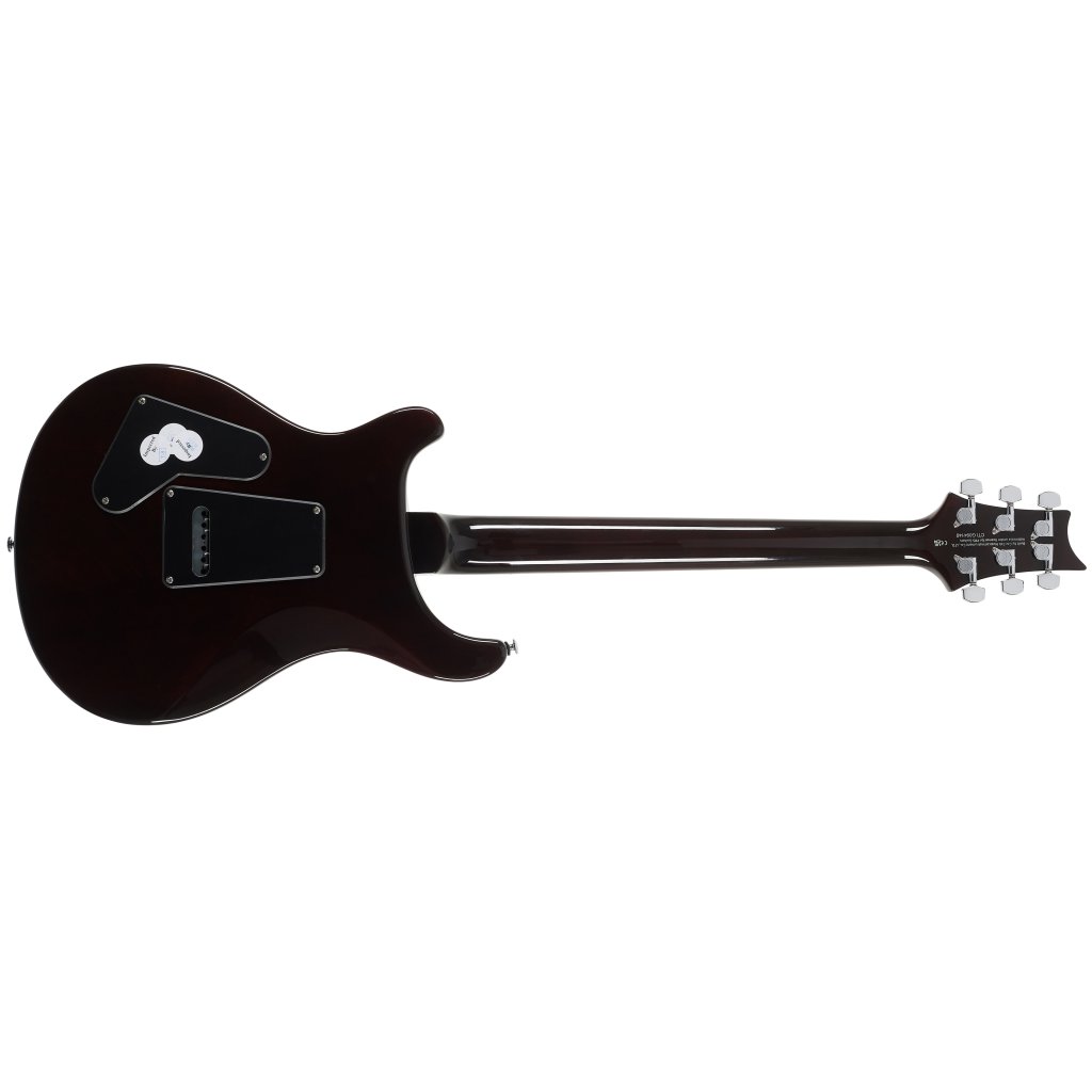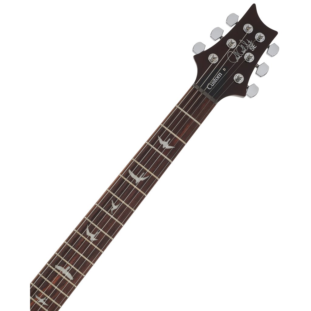 Mahagonové tělo kytary SE Custom 24 Orange Tiger Smokeburst z limitované řady značky zdobí javorový top a efektní vrchní dýha fládrovaného javoru. Výřez Shallow Violin carve přibližuje kvalitou herní vlastnosti nástroje k dražším americkým modelům série Core. K javorovému krku s profilem Wide Thin je přilepen palisandrový hmatník osazený čtyřiadvaceti pražci. Orientaci na hmatníku usnadňují polohové značky v podobě perleťových ptačích siluet.