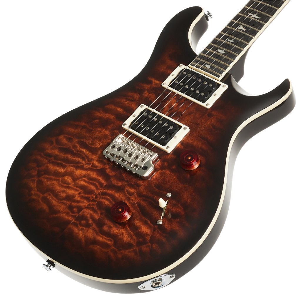 Mahagónové telo gitary SE Custom 24 Quilt Package Black Gold Sunburst zdobí javorová vrchná doska a efektná vrchná doska s plamennou javorovou dyhou, ktorá je použitá aj na hlavici. Vyrezávanie Shallow Violin približuje kvalitu hry nástroja k drahším modelom série American Core. Ebenový hmatník osadený dvadsiatimi štyrmi pražcami je prilepený k javorovému krku s profilom Wide Thin. Orientáciu na hmatníku uľahčujú polohové značky v podobe perleťových siluet vtákov.