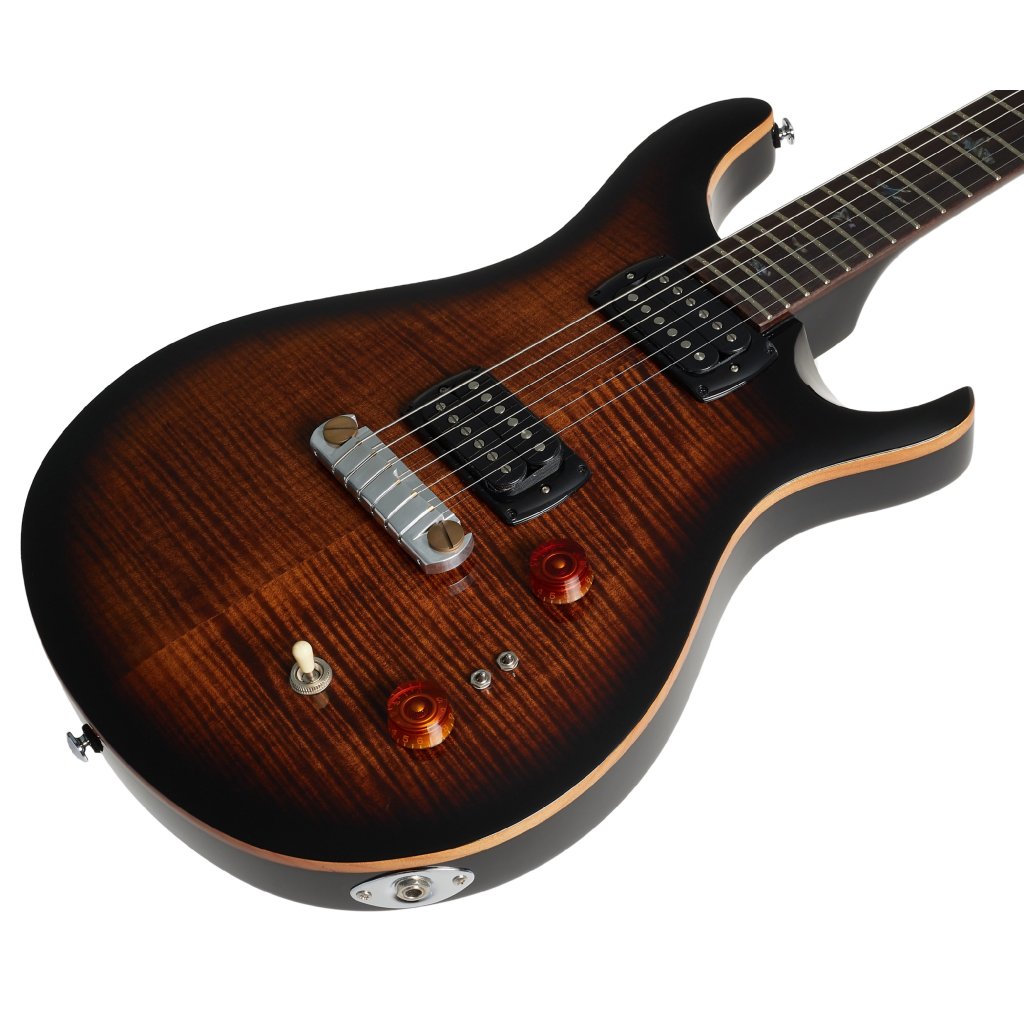Už na prvý pohľad zaujme masívnym ergonomicky tvarovaným mahagónovým telom s typickým dvojitým výrezom PRS, vyrezávanou javorovou vrchnou doskou a pôsobivou dyhou z fládrovaného javora. Palisandrový krk s profilom Wide Fat je prilepený k mahagónovému krku osadenému dvadsiatimi dvoma pražcami a zdobenému tradičnými značkami polohy PRS so siluetami vtákov.
