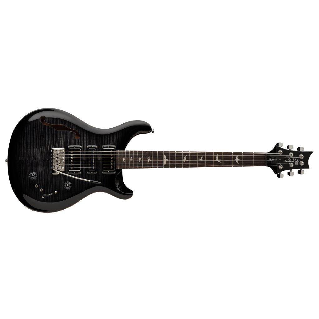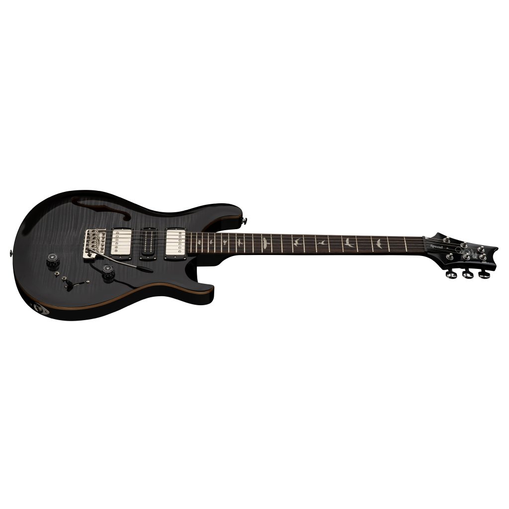 Pololubové mahagonové tělo s jedním F výřezem kytary PRS SE Special Semi-Hollow Charcoal Burst zdobí javorový top a efektní vrchní dýha z fládrovaného javoru. Výřez Shallow Violin carve přibližuje kvalitou herní vlastnosti nástroje k dražším americkým modelům série Core. K javorovému krku s profilem Wide Thin je přilepen palisandrový hmatník osazený dvaadvaceti pražci. Orientaci na hmatníku usnadňují polohové značky v podobě ptačích siluet.
