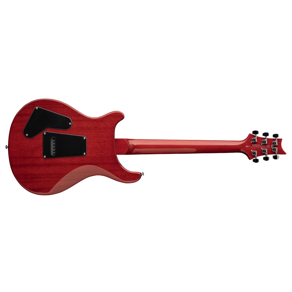 Mahagonové tělo kytary PRS SE Studio Charcoal Cherry Burst s typickým dvojitým PRS výřezem zdobí javorový top a efektní dýha z figurovaného javoru. Výřez Shallow Violin carve přibližuje kvalitou herní vlastnosti nástroje k dražším americkým modelům série Core. K javorovému krku s profilem Wide Thin je přilepen palisandrový hmatník osazený dvaadvaceti pražci. Orientaci na hmatníku usnadňují PRS polohové značky v podobě ptačích siluet.