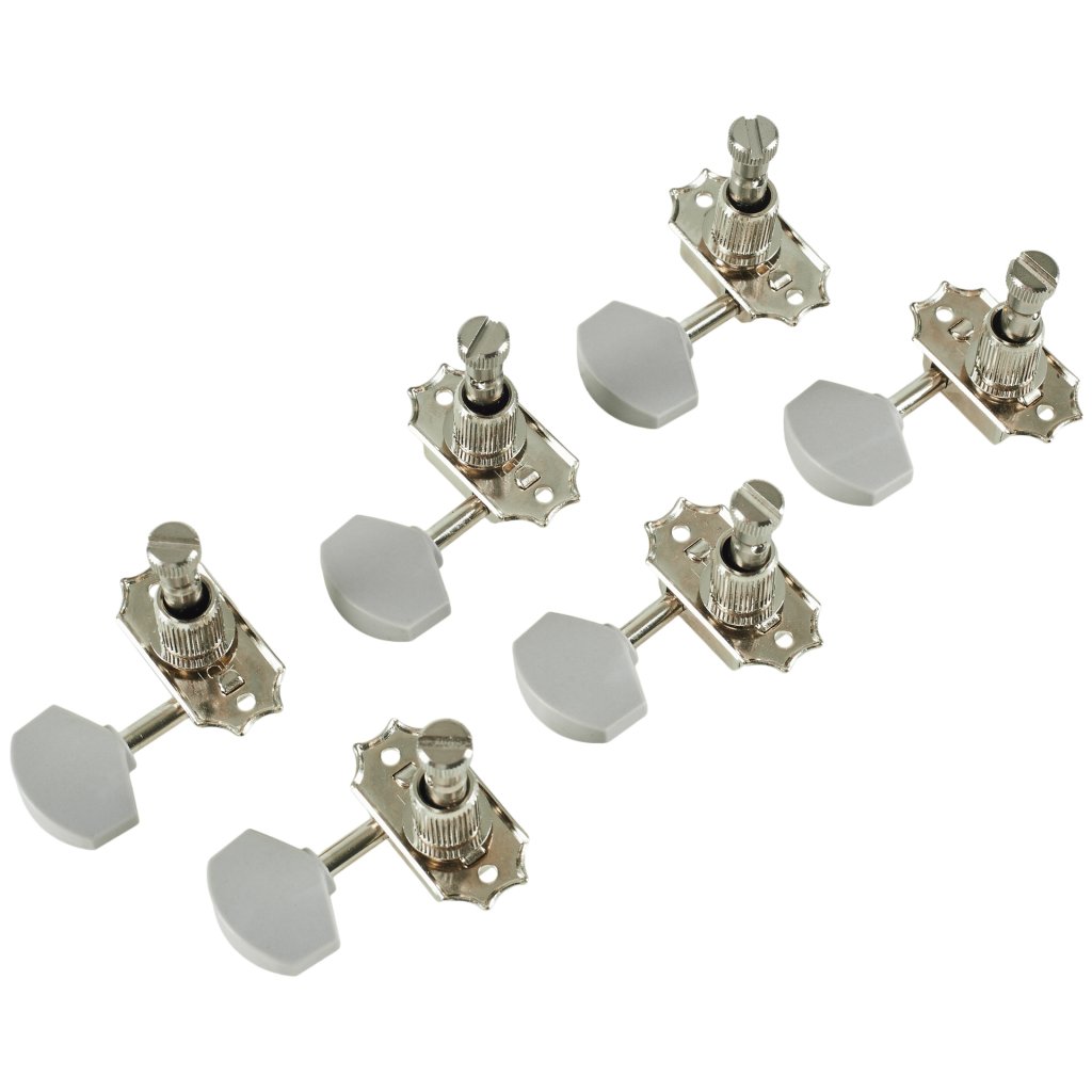 Ladičky PRS Silver Sky sú navrhnuté ako náhradný diel pre SE Silver Sky a sú k dispozícii v niklovom vyhotovení. Každá sada obsahuje puzdro a dve skrutky. Ladiace mechaniky sú navrhnuté vo vintage štýle so sivými gombíkmi a v tomto prípade ide o kompletnú sadu šiestich kusov. Tieto ladiace mechaniky sú ideálnou voľbou pre každého, kto chce svoju gitaru vylepšiť a hľadá presnú stabilitu ladenia.