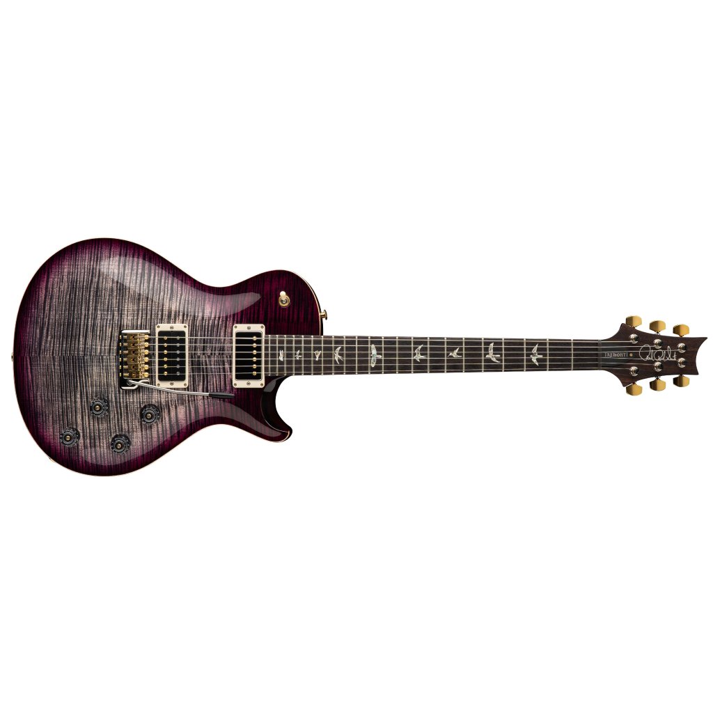 Jednorezná Tremonti Trem Charcoal Purple Burst je signature modelom Marka Tremontiho, amerického gitaristu známeho z kapiel Creed a Alter Bridge. Ergonomicky tvarované mahagónové telo zdobí figúrovaný javorový top a lesklý nitro lak. Jednodielny mahagónový krk s profilom Pattern Thin je prilepený k palisandrovému hmatníku osadenému dvadsiatimi dvoma pražcami. Orientáciu na hmatníku uľahčujú značkové PRS pozičné značky v podobe luxusných perleťových siluet vtákov.