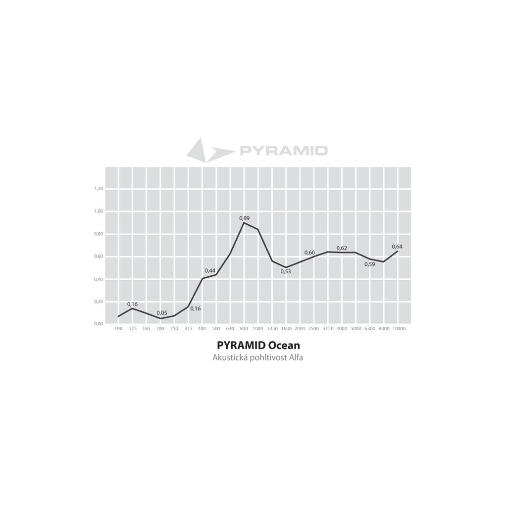 Akustická pena Pyramid Ocean ponúka efektívne a atraktívne riešenie akustiky miestnosti vo forme penových panelov so vzorom vlny. Profil vzoru umožňuje kombináciu vertikálneho a horizontálneho ukladania panelov, čím sa rozbíjajú jednotné plochy a teoreticky sa zvyšuje účinnosť. Účinnosť akustickej absorpcie tohto panelu sa prejavuje v útlme, najmä v stredných a vyšších frekvenciách.