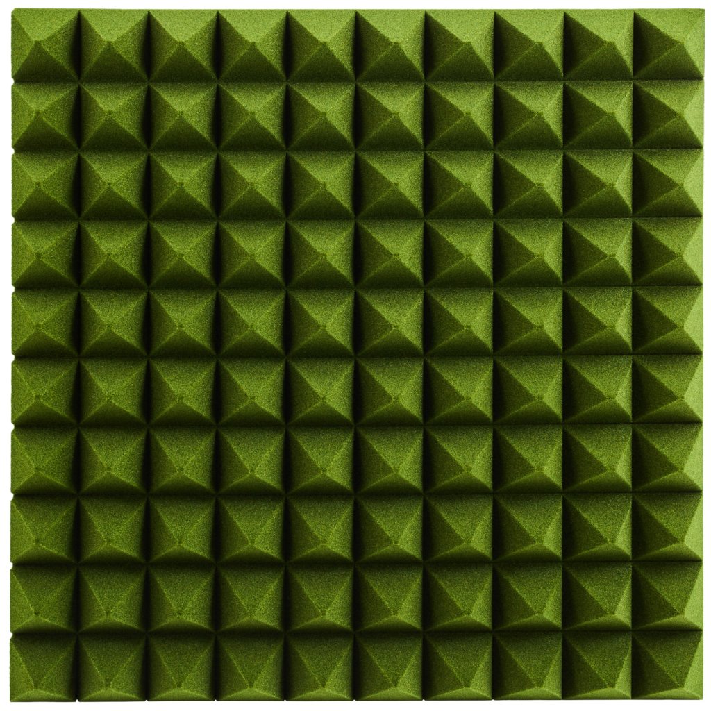 Akustický molitan Pyramid 50mm Green nabízí efektivní a zároveň atraktivní řešení akustiky prostoru v podobě pěnových panelů s jehlanovým vzorem rozměru 50 x 50 cm a tloušťce 5 cm. Jedná se o jedno z nejoblíbenějších provedení, které je v rámci větších ploch dobré kombinovat s jiným vzorem, pokud chcete dosáhnout lepšího účinku. Efektivnost akustického pohlcení se u tohoto panelu projeví útlumem zejména ve středních a vyšších frekvencích.