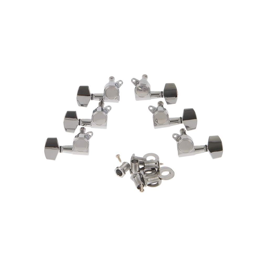 Ladiace mechaniky pre elektrickú gitaru. Sú vyrobené z kovu v chrómovej povrchovej úprave, štipce sú tiež kovové. Vhodné pre nástroje s rozložením mechaník v štýle 3+3.
