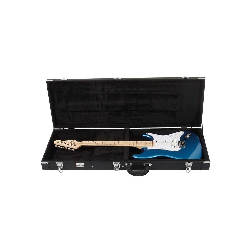Kufry Razzor nabízí ve své cenové kategorii nadstandardní ochranu pro váš nástroj. Jsou vyrobeny z pětivrstvé překližky potažené PVC, takže cenný náklad uvnitř jen tak něco neohrozí – ať je to špatné počasí, neodborná přeprava nebo nešikovní spoluhráči. Vnitřní fixace krku navíc drží nástroj ve stabilní poloze za všech okolností. Potěší také přihrádka na nejnutnější příslušenství a zámek na klíč.