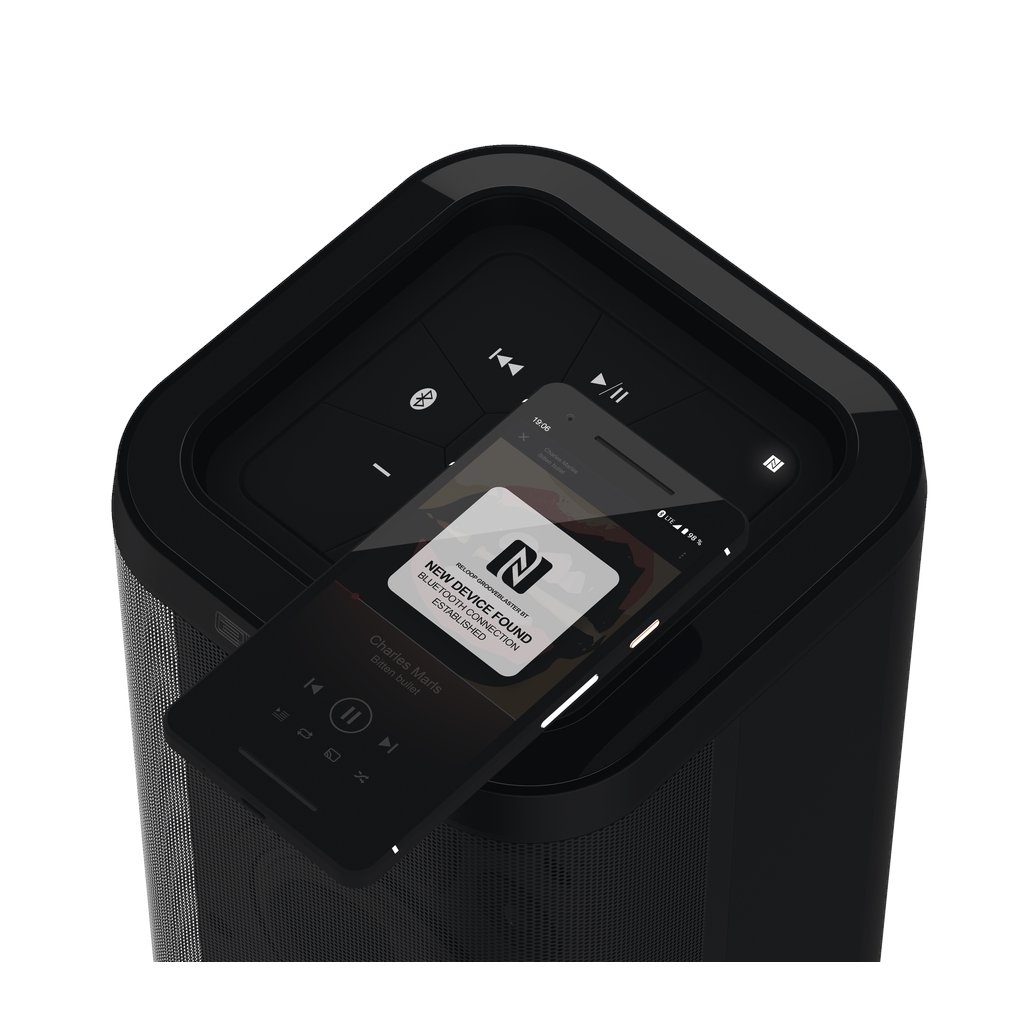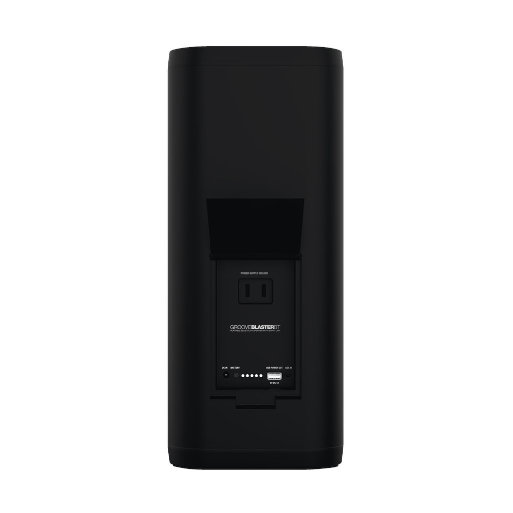 Groove Blaster BT obsahuje jeden 6" basový reproduktor, dva 3" stredotónové reproduktory a dvojicu 1" výškových reproduktorov, ktoré sú zapojené samostatne a spolu so zosilňovačom triedy D poskytujú maximálny výkon až 100 W. Zariadenia môžete pripojiť pomocou bezdrôtovej technológie Bluetooth 4.0 a signál sa môže prenášať až na vzdialenosť 30 m. Na rýchle pripojenie môžete použiť technológiu NFC. Horný panel ponúka prehľadný ovládací panel, na ktorom okrem základných ovládacích prvkov nájdete aj tlačidlo na zapnutie funkcie Bluetooth alebo prepínač na spárovanie s iným zariadením Groove Blaster BT pre ešte lepší stereofónny zvuk. Zadný panel ponúka indikátor kapacity batérie, port USB na napájanie ďalších zariadení, vstup Aux In pre staršie hudobné prehrávače a konektor napájacieho adaptéra. Batéria vydrží na jedno nabitie až desať hodín používania. Súčasťou balenia je prídavná rukoväť na jednoduchú prepravu.