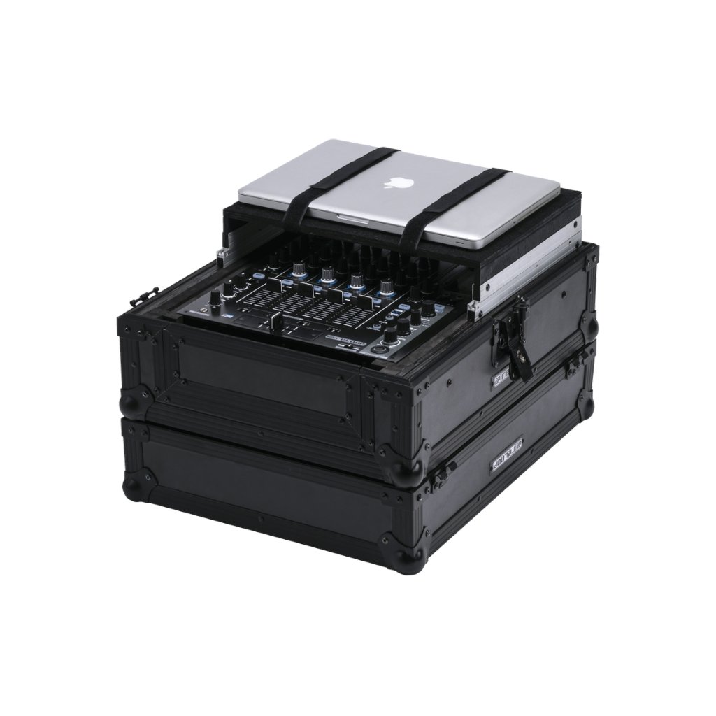 Prémiové puzdro na DJ mixážny pult ponúka maximálnu ochranu a bezpečnosť pri náročných prechodoch medzi produkciami. Kufrík je vyrobený z kombinácie pevnej drevenej konštrukcie a odolného hliníka, pričom jeho vnútorná strana je z mäkkého PVC. Na jednoduché pripojenie káblov je skriňa vybavená predným a zadným odnímateľným panelom. Súčasťou balenia je držiak na notebook a penové popruhy pre maximálnu flexibilitu kufra.