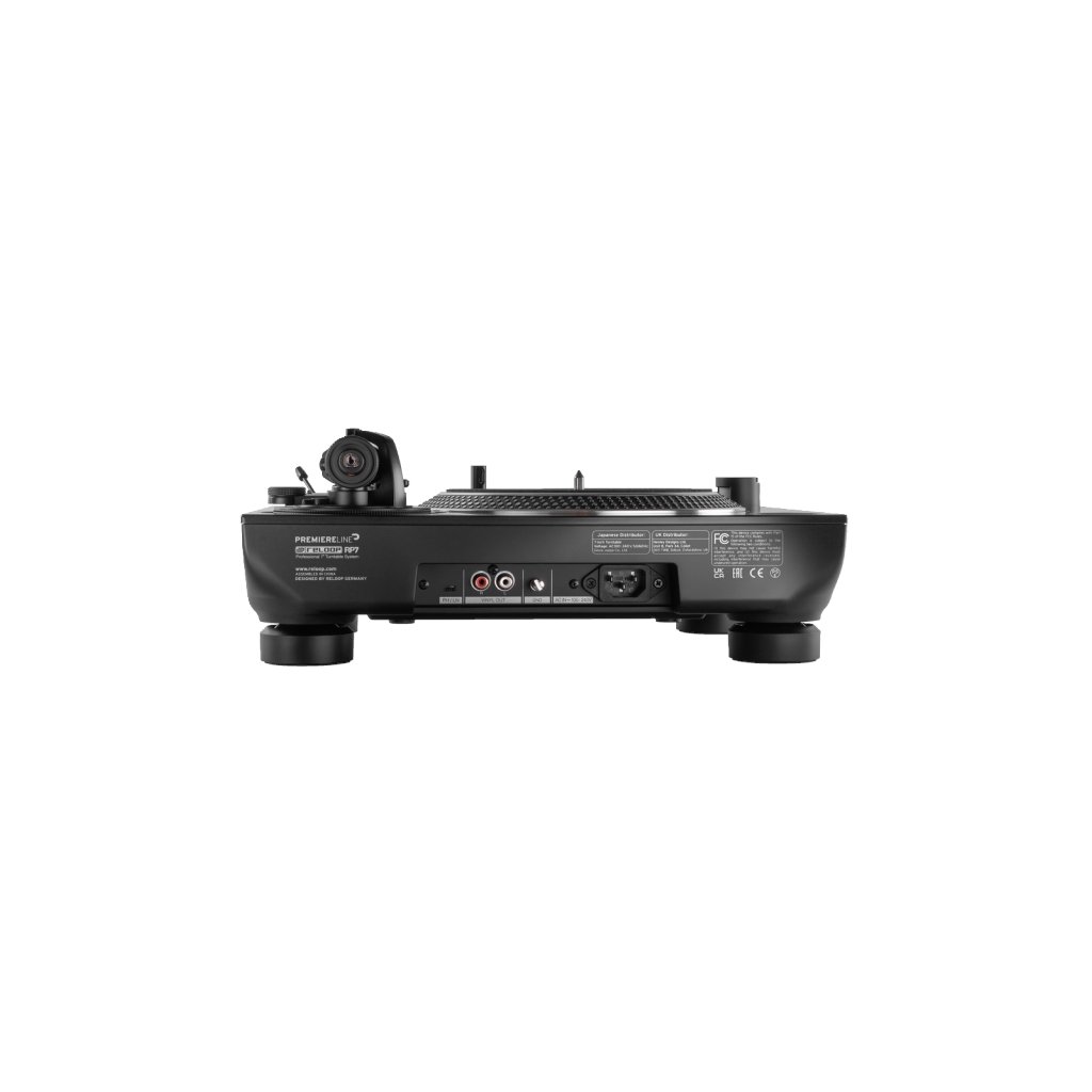Z hlediska konektivity je gramofon vybaven přepínatelnými phono/line výstupy se zlacenými konektory, což usnadňuje integraci do jakéhokoli DJ setupu bez nutnosti samostatného phono vstupu. Robustní kovové šasi s černým metalickým povrchem dodává gramofonu profesionální vzhled a vysokou odolnost pro použití doma, ve studiu i na pódiu.