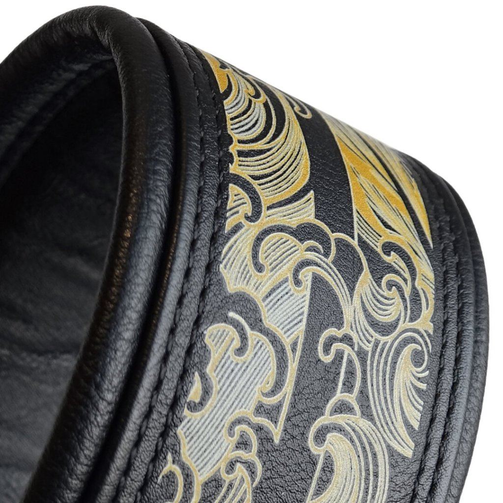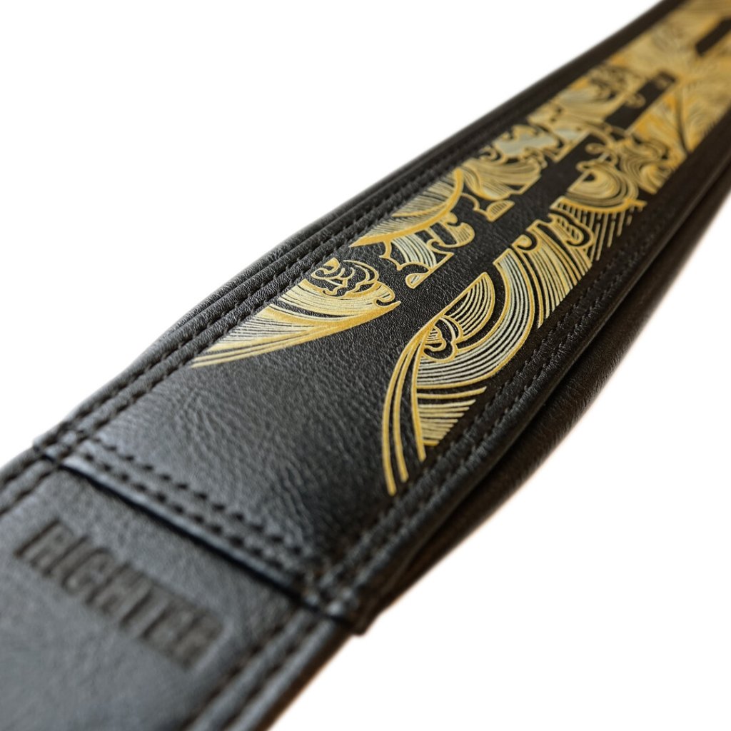 Richter vyrába predovšetkým kožené gitarové remienky, ale ponúka aj remienky zo syntetickej kože, ktoré ocenia najmä vegáni. Tento signature model nemeckého gitaristu Pi Stoffersa zo skupiny Lord of the Lost vznikol v spolupráci s tatérkou Jessicou Svartvit, ktorá navrhla jeho elegantný dizajn. Remienok je vyrobený z kvalitnej imitácie kože, ktorá spĺňa najvyššie štandardy a poskytuje skvelé rozloženie hmotnosti, vysokú pevnosť a odolnosť. Pre väčšie pohodlie je remienok vybavený ergonomickým polstrovaním a mäkkými zaoblenými okrajmi.