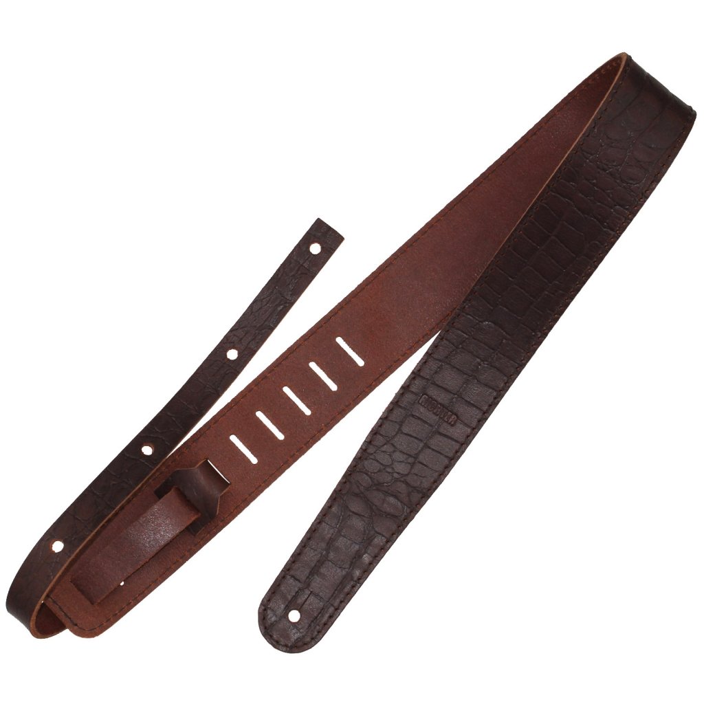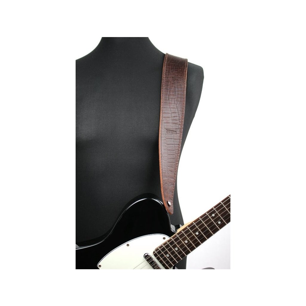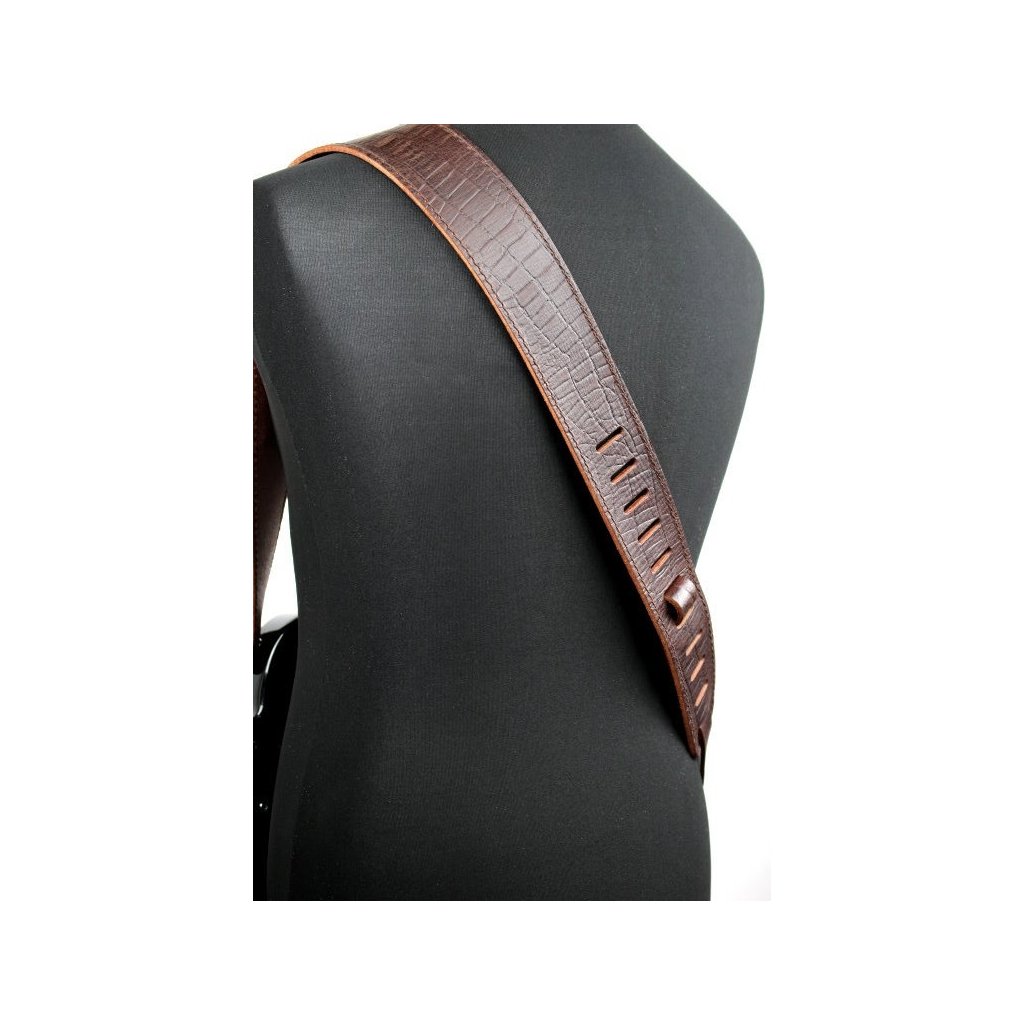 Exkluzívny gitarový popruh z byvolej kože. Šírka 6 centimetrov a hrúbka 3,5 - 4 milimetre poskytnú dostatočný komfort aj pri dlhom hraní, originálny dizajn zabezpečuje krokodílí vzor a prešívanie remeňa.