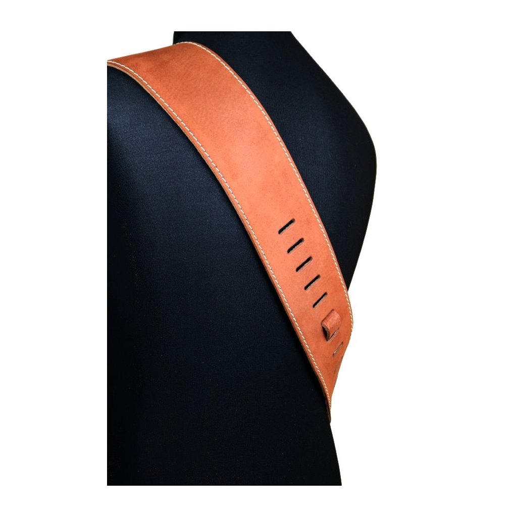 Exkluzívny semišový gitarový popruh. Neobvyklá šírka 9 centimetrov poskytne úľavu vášmu chrbtu aj pri používaní tých najťažších nástrojov, originálny dizajn zabezpečuje kontrastné prešívanie na okrajoch.