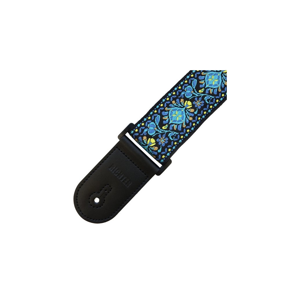 Tento retro gitarový/basgitarový popruh od nemeckej spoločnosti Richter bol starostlivo vyrobený tak, aby spĺňal vysoké nároky profesionálnych hudobníkov. Môžete sa tak spoľahnúť na maximálny komfort pri hraní a vysokú odolnosť. Vďaka širokému rozsahu nastaviteľných dĺžok si môžete byť istí, že vám popruh dokonale padne v každej situácii. Popruh je vyrobený zo syntetických, 100 % vegánskych materiálov, konkrétne zo štýlovej žakárovej tkaniny s jedinečným retro dizajnom, ktorá je na spodnej strane doplnená o pohodlné a veľmi pevné nylonové vlákna.
