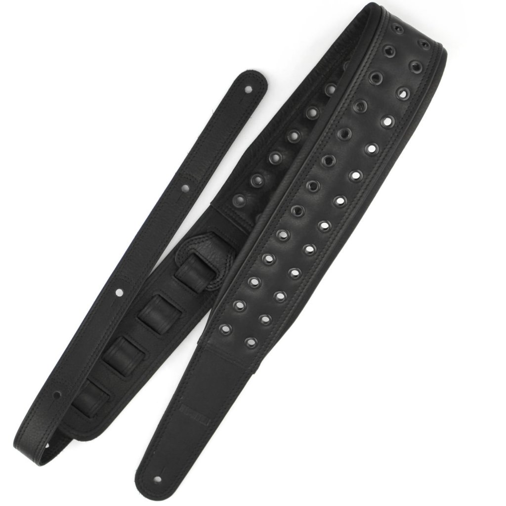 Exkluzívny gitarový remienok z talianskej kože Nappa, ktorá sa používa na výrobu najjemnejších rukavíc. Polstrovanie široké 7 centimetrov a hrubé 6 milimetrov po celej dĺžke popruhu poskytne úľavu vášmu chrbtu aj pri používaní tých najťažších nástrojov. Špeciálne vystuženie okolo otvorov na upevnenie nástrojov a dvojité prešitie zaručujú dlhú životnosť remienka.