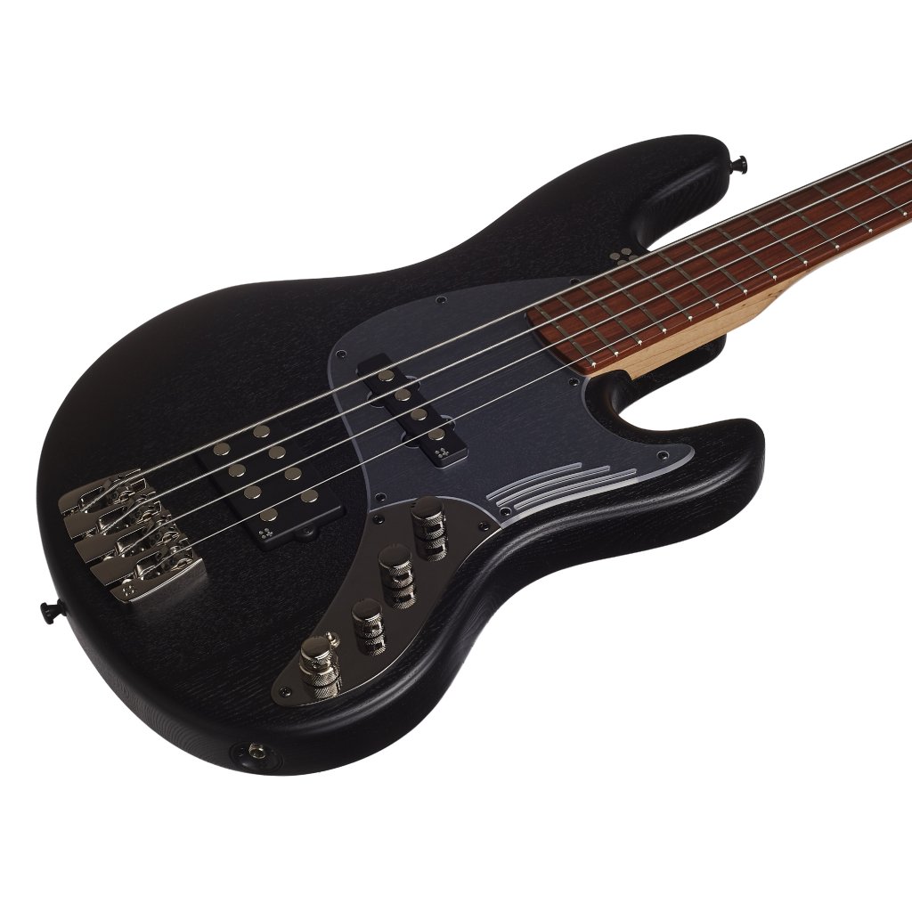 Kvalitný hardvér je v atraktívnej povrchovej úprave Gunmetal Grey, ktorá dokonale ladí s matným čiernym lakom basgitary, a telo nástroja chráni štýlový plexisklový pickguard.