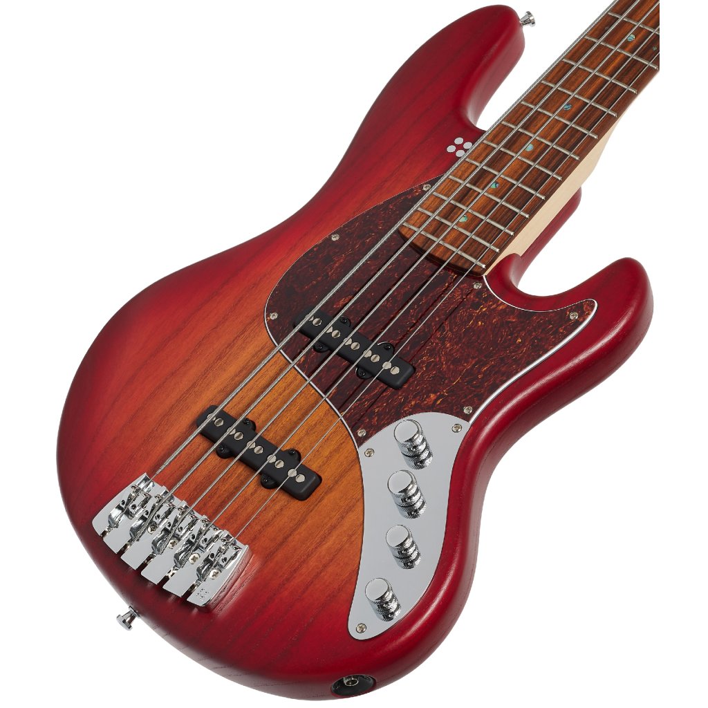 Tělo pětistrunné baskytary Sandberg California TT 5 SL PF Matte Cherry Sunburst je vyrobeno ze dřeva pavlovnie. Ke krku z kanadského javoru je přilepen hmatník ze dřeva pau ferro osazený dvaadvaceti pražci. Díky přišroubování k tělu pomocí šesti šroubů drží krk pevně ve zcela přesné poloze.