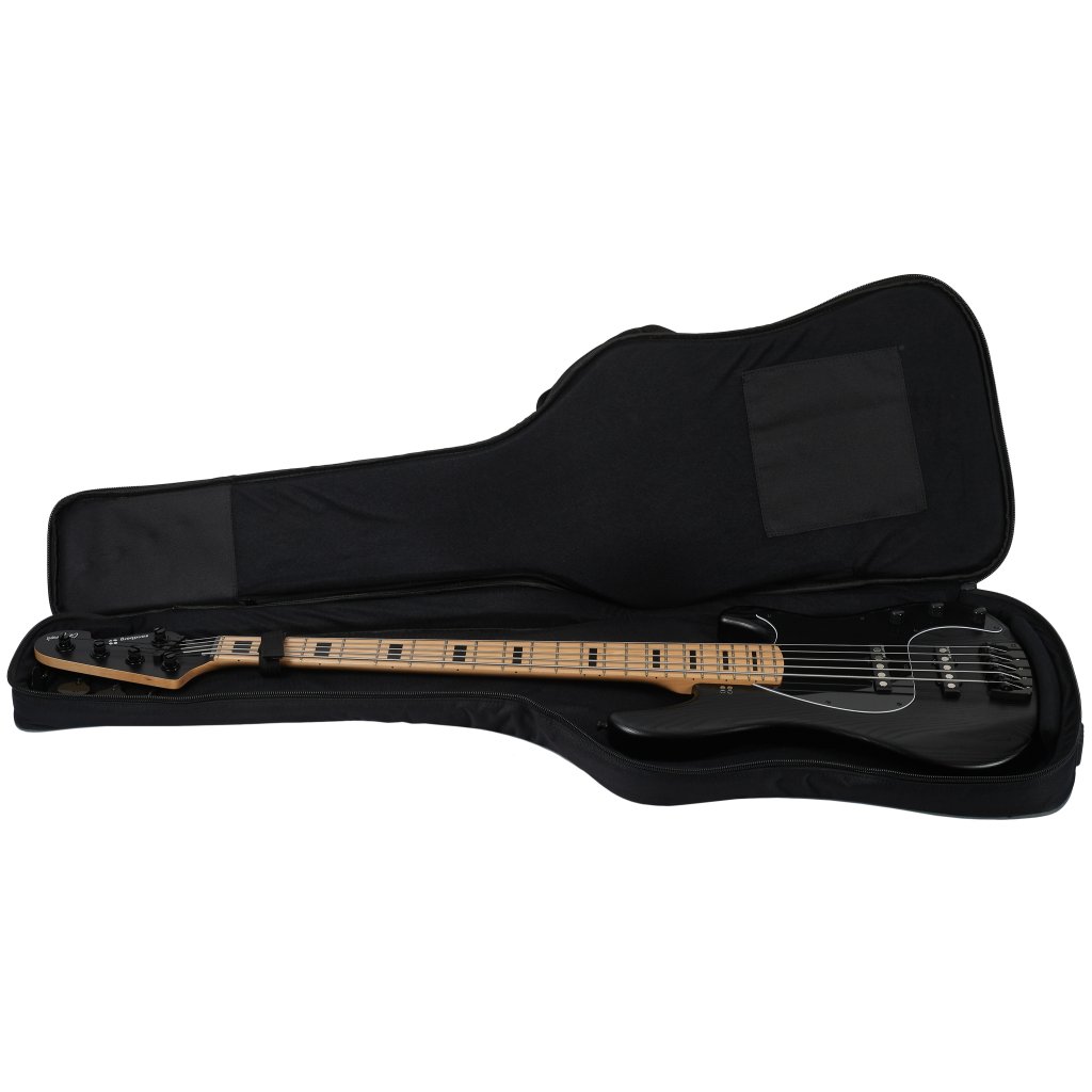 Tělo pětistrunné baskytary California V VM5 35 EB Black je vyrobeno ze dřeva evropského jasanu. Ke krku z kanadského javoru je přilepen javorový hmatník osazený dvaadvaceti pražci. Díky přišroubování k tělu pomocí šesti šroubů drží krk pevně ve zcela přesné poloze.