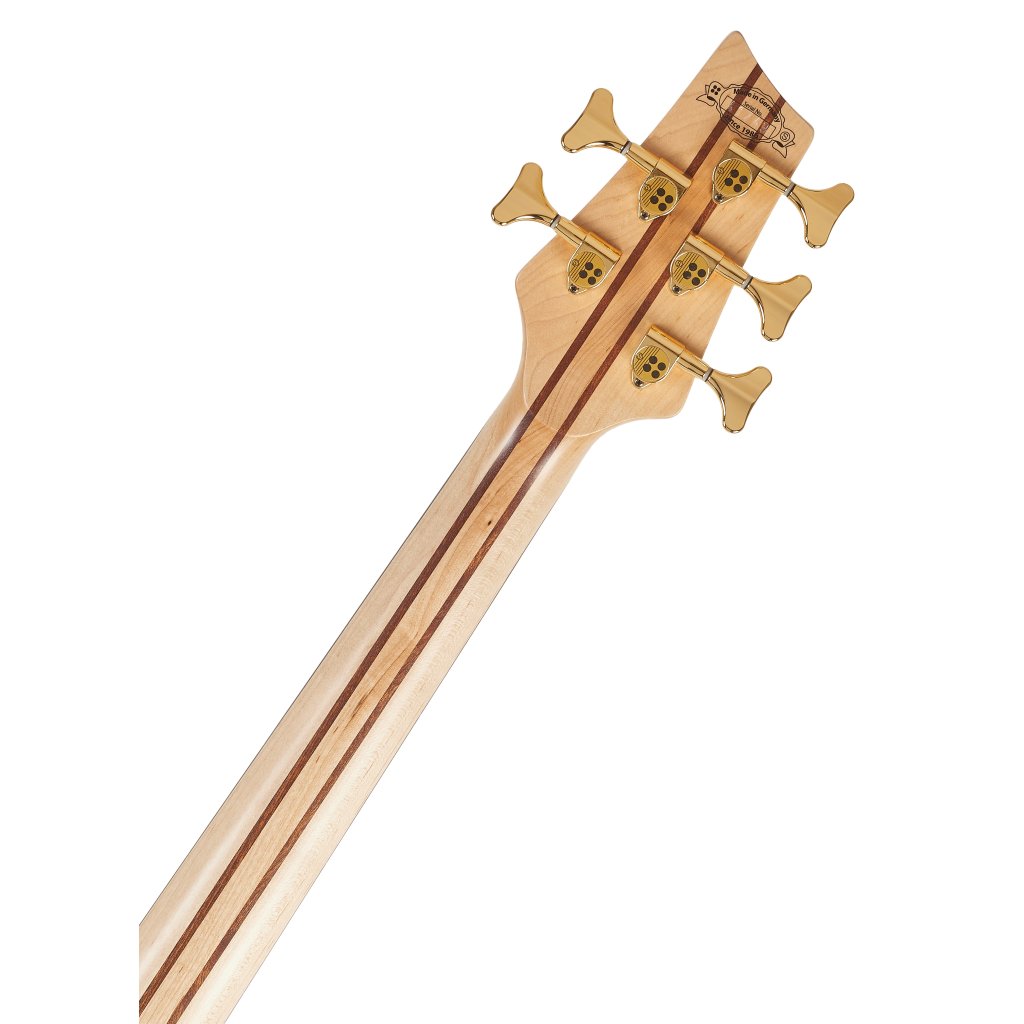 Elektrická bezpražcová basgitara Custom 5 od spoločnosti Sandberg je majstrovský nástroj, ktorý kombinuje precízne spracovanie s modernými funkciami pre náročných hráčov. Mahagónové telo s exkluzívnou vrchnou doskou zo vzácneho dreva je doplnené matnou povrchovou úpravou, ktorá zvýrazňuje jeho prirodzenú krásu. Krk z kanadského tvrdého javora je upevnený piatimi skrutkami a osadený ebenovým hmatníkom, ktorý umožňuje širokú škálu herného prejavu. Dĺžka menzúry je štandardných 34", teda 864 milimetrov.