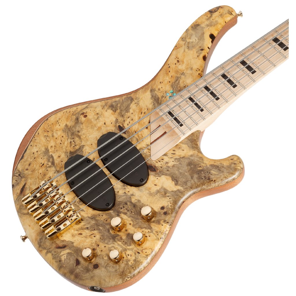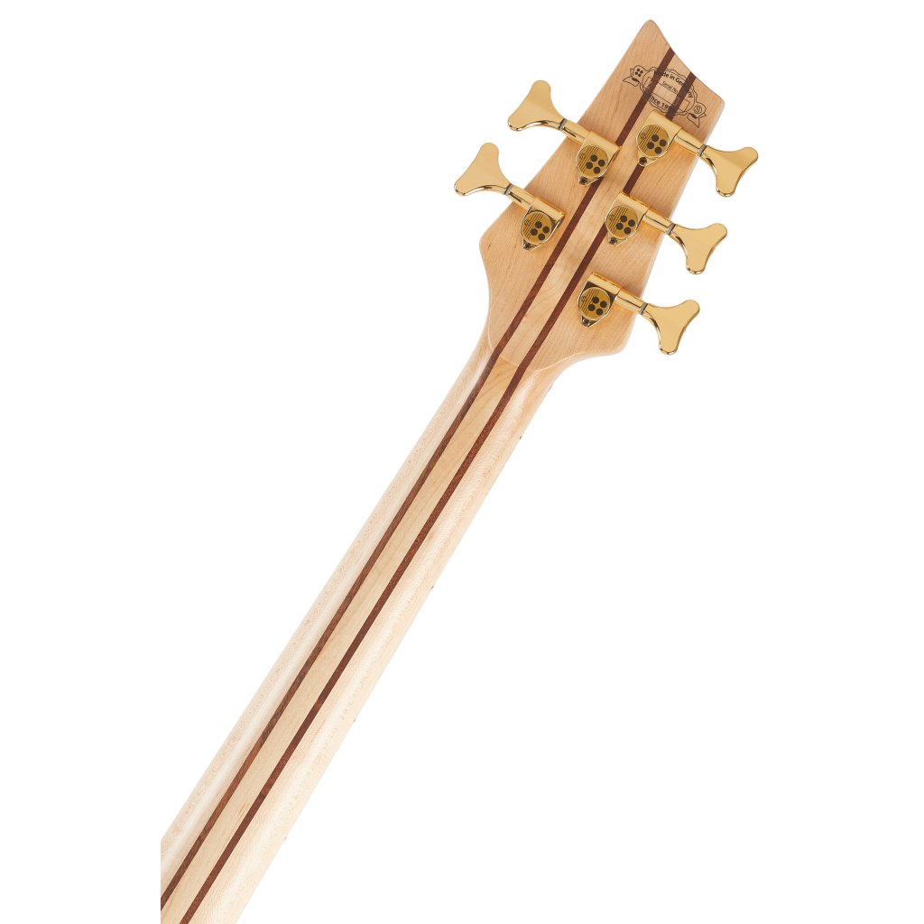 Elektrická basgitara Custom 5 od spoločnosti Sandberg je majstrovský nástroj, ktorý kombinuje precízne spracovanie s modernými funkciami pre náročných hráčov. Mahagónové telo s vrchnou doskou z exkluzívneho vzácneho dreva je doplnené matnou povrchovou úpravou, ktorá zvýrazňuje jeho prirodzenú krásu. Krk z kanadského tvrdého javora je upevnený piatimi skrutkami a osadený 24-pražcovým javorovým hmatníkom, ktorý umožňuje širokú škálu herného prejavu. Dĺžka menzúry je štandardných 34", teda 864 milimetrov.