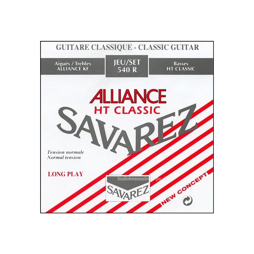 Struny značky Savarez vysokej kvality, nylonové pre klasickú gitaru. Alliance Rouge - štandardné pnutie