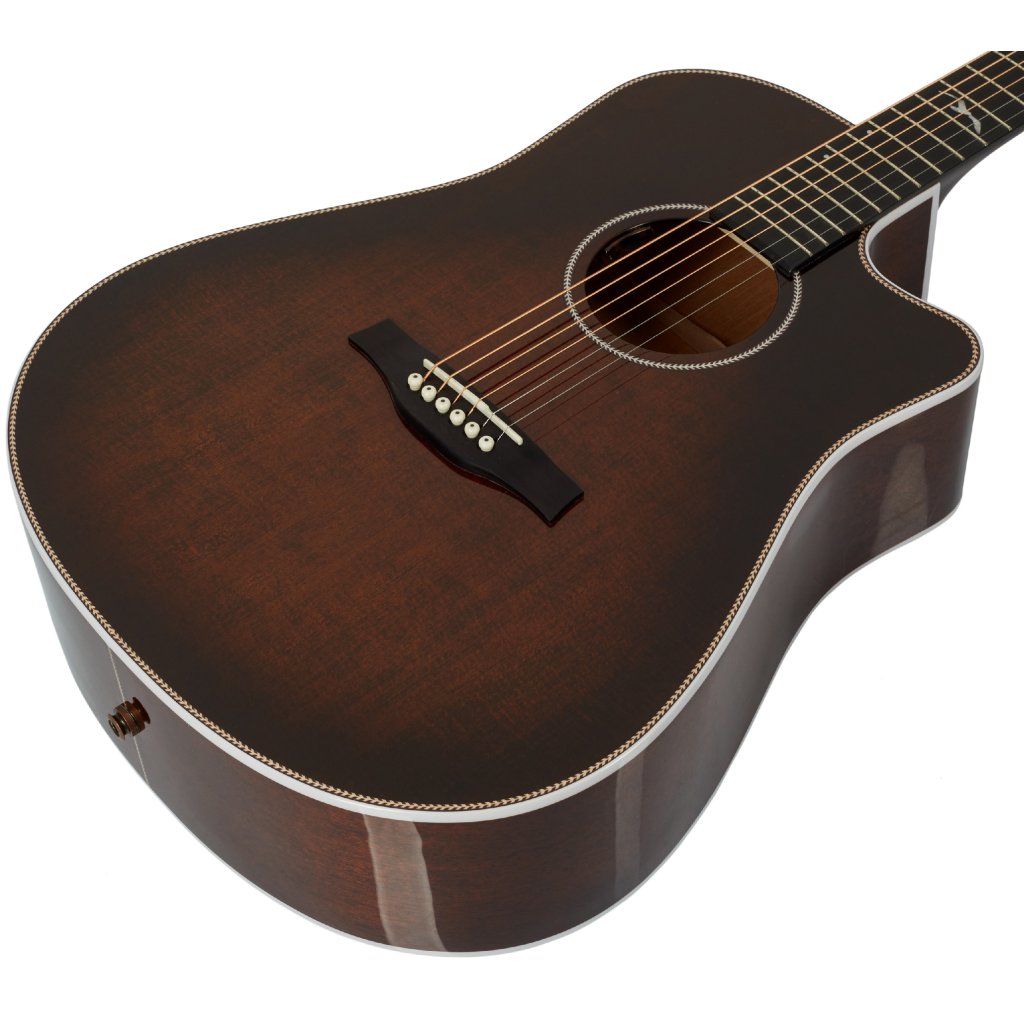 Obľúbený model Dreadnought Artist Peppino Signature, vyrobený podľa špecifikácií renomovaného umelca Peppina D'Agostina, dostal nový nádych v podobe nádhernej lesklej povrchovej úpravy Bourbon Burst. Nie je to jediná zmena. Masívnu rezonančnú dosku z tlakovo testovaného smreka teraz dopĺňa zadná strana a luby z masívneho mahagónu, zatiaľ čo hmatník je v súlade s modernými trendmi vyrobený z kompozitného materiálu richlite. Širší mahagónový krk (šírka nultého pražca 48,3 mm) bude aj naďalej poskytovať dokonalý komfort, najmä pre hudobníkov, ktorí preferujú fingerstyle hru.