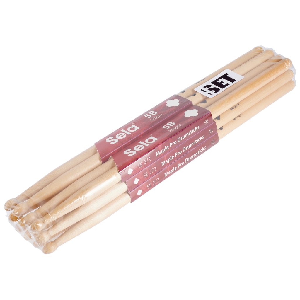 Tieto profesionálne paličky od spoločnosti Sela sú vyrobené z javorového dreva, ktoré im dodáva skvelé zvukové vlastnosti a maximálnu odolnosť. Na rozdiel od iných drevín je javor ľahší, čo dodáva hre rýchlosť a dynamiku. Okrem toho sú paličky vyrobené tak, aby boli dokonale vyvážené a poskytovali pohodlný úchop. To všetko spolu s hrubším priemerom modelu 5B z nich robí veľmi univerzálne paličky, ideálne najmä pre štýly, ako je rock a pop. Tento model má tradičný hrot, ktorý zaručuje pohodlné hranie a plný zvuk.