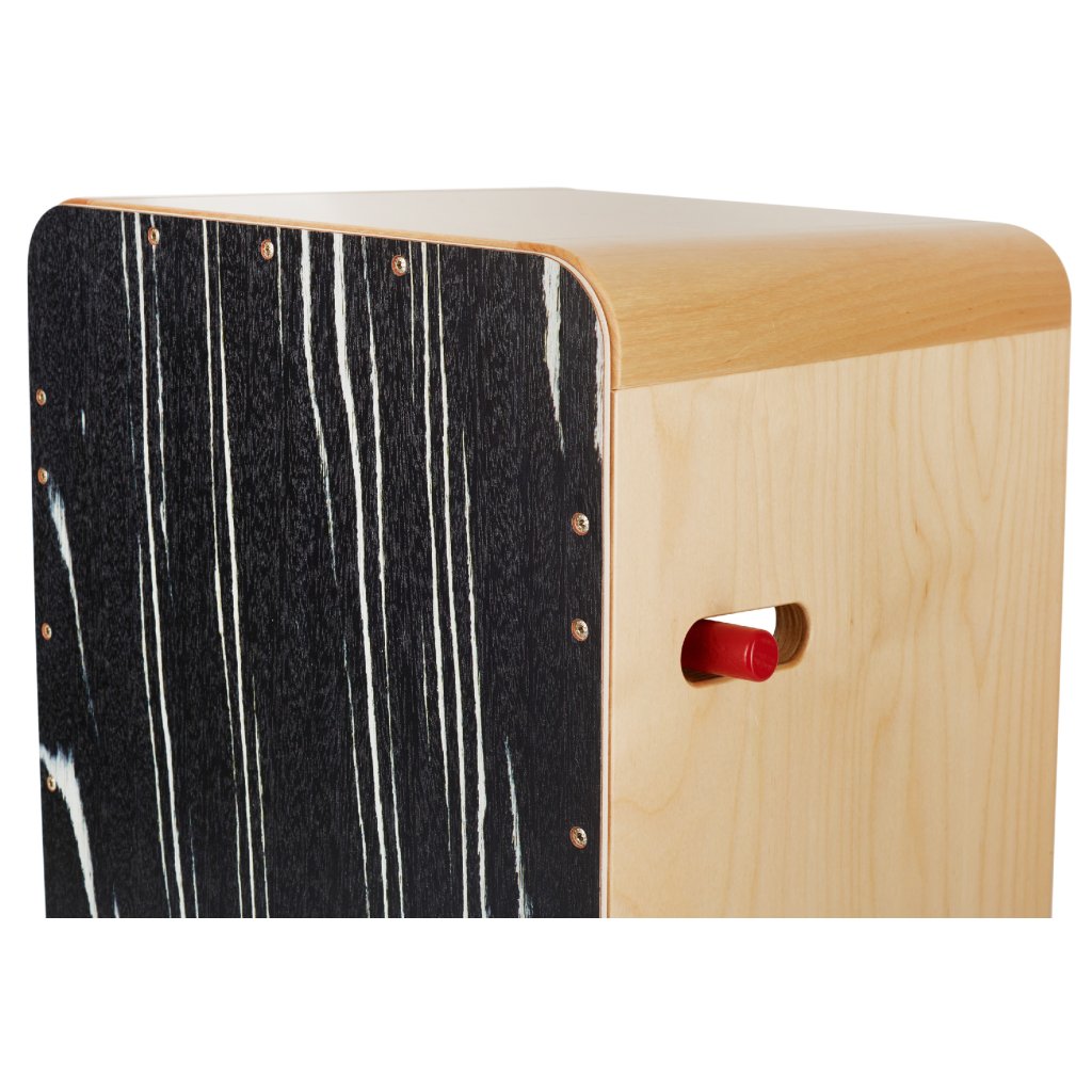 Horná časť hracej dosky obsahuje špeciálny strunník, ktorý poslucháčovi dodáva pocit klasického snare bubna. Tento intuitívny snare systém možno ľahko vypnúť pomocou dvojpolohového bočného prepínača, čím získate zvuk tradičného cajonu. CaSela Pro má tiež individuálne nastaviteľné rohy, takže okrem jasných výšok môžete dosiahnuť aj veľmi široký rozsah basových frekvencií.