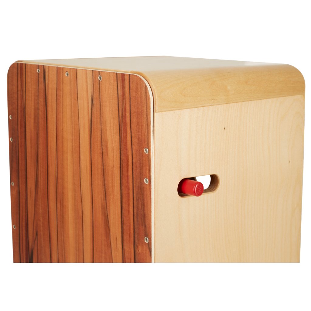 Horní část hrací desky obsahuje speciální struník, který posluchači navodí pocit klasického snare bubínku. Tento intuitivní snare systém můžete snadno vypnout bočním dvoupolohovým přepínačem, čímž získáte zvuk tradičního cajonu. CaSela Pro má dále individuálně nastavitelné rohy, takže kromě ostrých výšek můžete také docílit i velmi širokého spektra basových frekvencí.