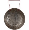 Jeho téměř plochý tvar bez ohnutého okraje vytváří po úderu silné a dlouhotrvající vibrace, které se šíří celým prostorem i tělem posluchače. Díky neopracovanému povrchu nabízí mimořádně bohaté spektrum frekvencí a přirozený, hluboce rezonující tón, který má uklidňující i mystický účinek. Každý kus je jedinečný – s viditelnými stopami ručního kovotepce a přirozenou patinou, které podtrhují jeho umělecký charakter.