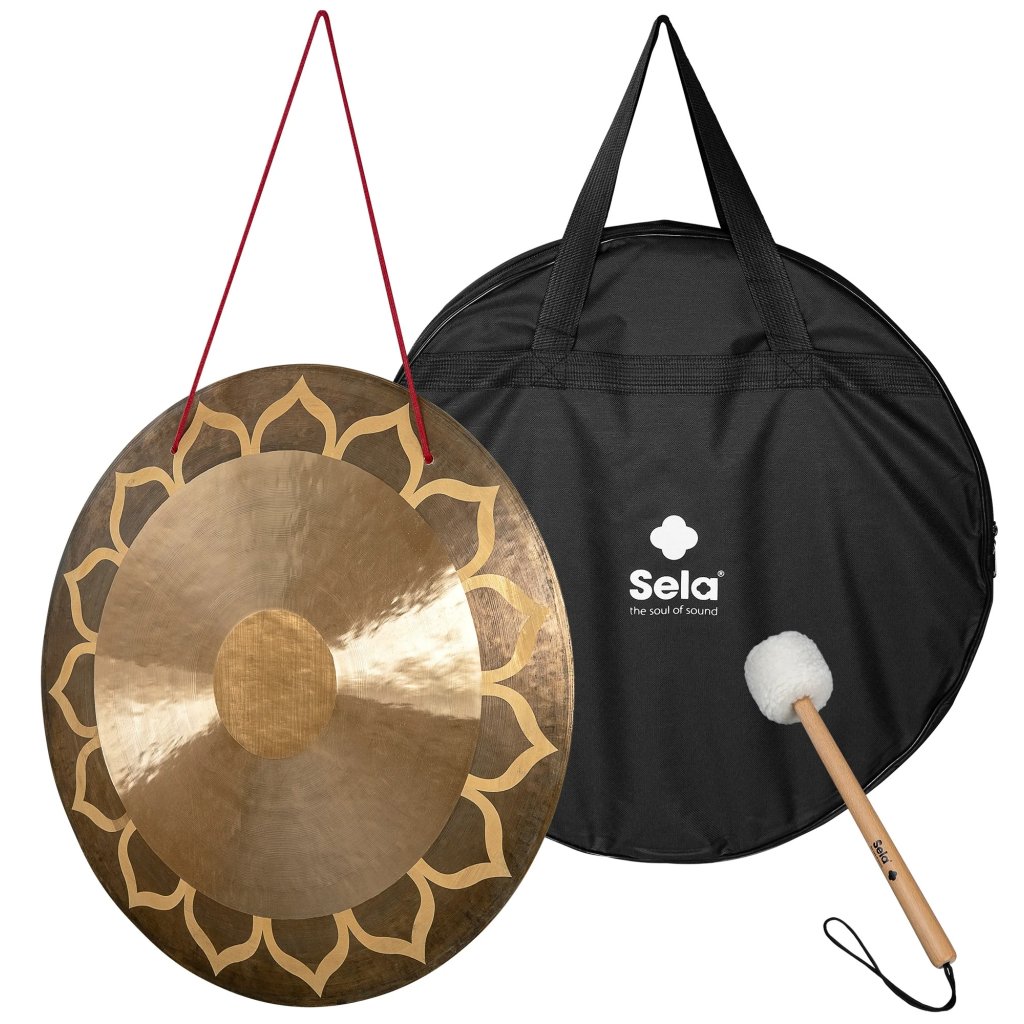 Sela Wind Gong Lotus 24" je výjimečný ručně vyráběný nástroj, který spojuje zvukovou hloubku s duchovní estetikou. Pochází z Číny a je zhotoven z speciální bronzové slitiny, jejíž vlastnosti zaručují bohatý a dlouhotrvající zvukový projev. Díky plochému tvaru bez ohnutého okraje má tento gong jinou rezonanční odezvu než tradiční modely, což jej činí atraktivním pro různorodé hudební i terapeutické využití.