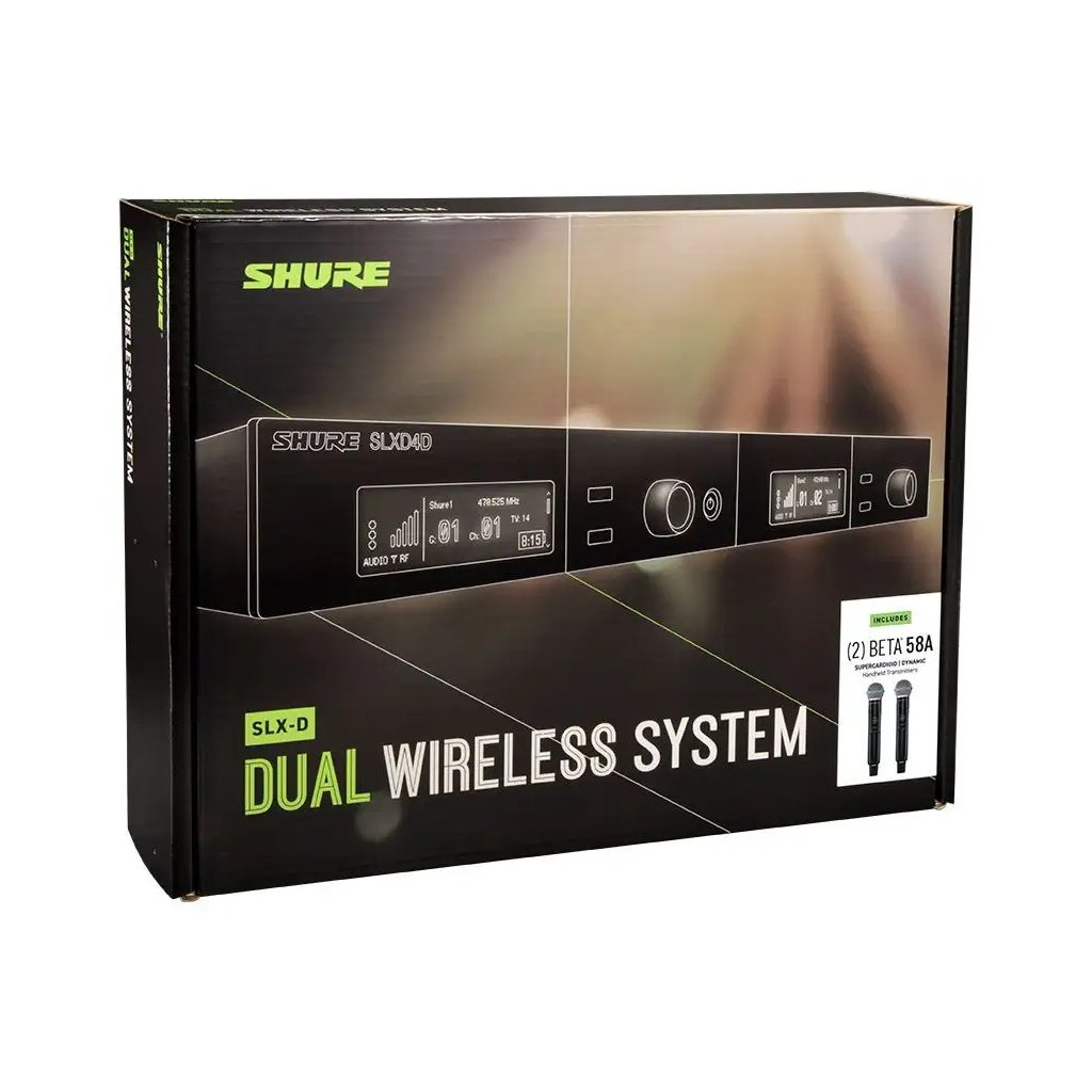 SLXD24D je duálny bezdrôtový set od Shure vhodný pre live performance alebo konferencie. Zaistí kvalitný a ničím nerušený bezdrôtový prenos vášho hlasu. Prijímač SLXD4D obsahuje XLR a Jack výstup do mixpultu alebo zosilňovača. Vysielač SLXD2 s dynamickým mikrofónom Shure B58 potom obsahuje prepínač On/Off, dvojtlačítkový ovládací panel a displej s informáciami o stave batérie alebo užívateľskom nastavení mikrofónu. Jeho napájanie prebieha prostredníctvom dvoch AA batérií. Bezdrôtový set je k dostaniu v niekoľkých frekvenčných pásmach.