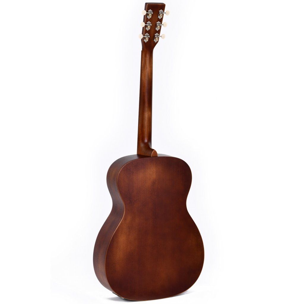 Sigma Guitars 000M-15-AGED je gitara z celomahagónovej série 15, a ako už názov napovedá, jedná sa o veľmi vydarene zostarnutú verziu štandardného modelu 000M-15. 000M-15-AGED je tvarom tela subtílnejší model, napriek tomu zvukové plný a vyrovnaný v celom spektre. Zvuk tejto gitary je zvonivo temný a vďaka menšiemu korpusu tiež veľmi konkrétny a jasný. Jej zvukový charakter môžete dobre uplatniť napríklad v blues, jazzu, folkovej, ale aj v rockovej muzike. Model 000M-15-AGED má presnú otvorenú mechaniku Grover, hmatník zo špecifického dreva Pau Ferro a taktiež kostený nultý pražec a kobylkové sedlo. Táto gitara je jasnou voľbou pre tých, ktorí chcú kvalitný ozvučený nástroj so špecifickým zvukom, ktorý je naviac veľmi osobitý a dodáva hráčovi charizma ostrieľaného muzikanta.
