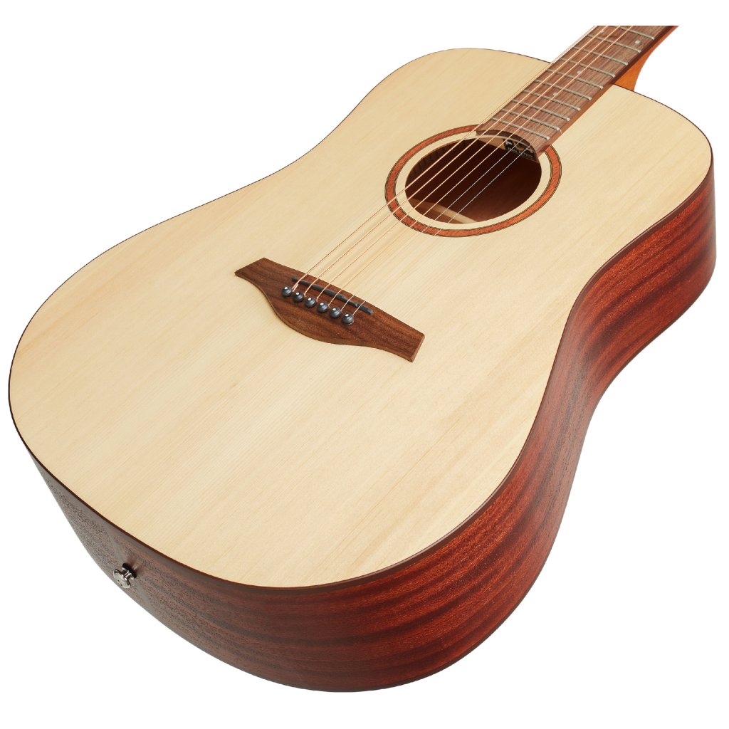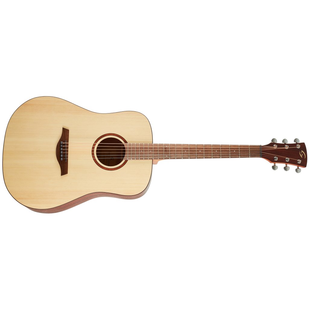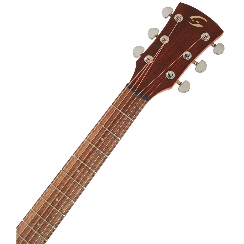 Akustické gitary značky Soundsation s označením CODY vychádzajú z tradičného westernového tvaru Dreadnought. Predstavujú dobrú voľbu prvého nástroja pre úplných začiatočníkov, ale aj príhodného spoločníka na príjemne strávený letný večer s priateľmi. Akustická gitara CODY DN-NT ponúka prednú dosku z preglejkovaného smreka, zadnú dosku a luby z preglejky sapele, krk z okoumé s príjemným C profilom, orechový hmatník osadený dvadsiatimi pražcami, orechovú kobylku, chrómované die-cast ladiace mechaniky satin.