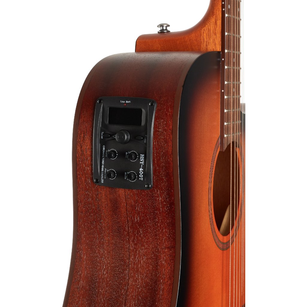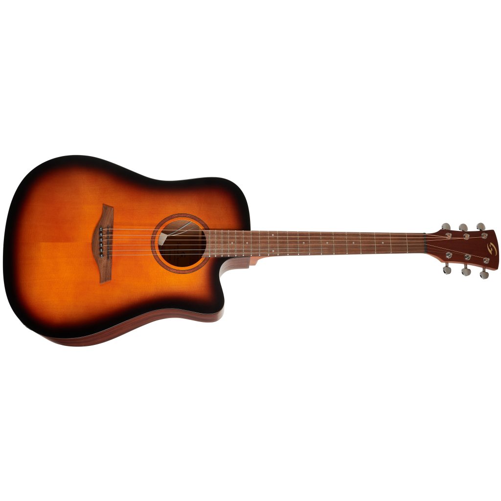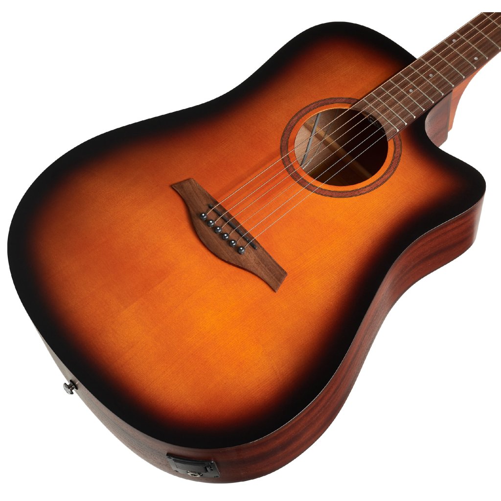 Akustické gitary značky Soundsation s označením CODY vychádzajú z tradičného westernového tvaru Dreadnought. Predstavujú dobrú voľbu prvého nástroja pre úplných začiatočníkov, ale aj príhodného spoločníka na príjemne strávený letný večer s priateľmi. Elektroakustická gitara CODY DNCE-SBT ponúka prednú dosku z preglejkovaného smreka, zadnú dosku a luby z preglejky sapele, krk z okoumé s príjemným C profilom, orechový hmatník osadený dvadsiatimi pražcami, orechovú kobylku a chrómované die-cast satin. O ozvučenie nástroja sa stará preamp EQ400T so štvorpásmovým ekvalizérom, funkciou phase a zabudovanou ladičkou.